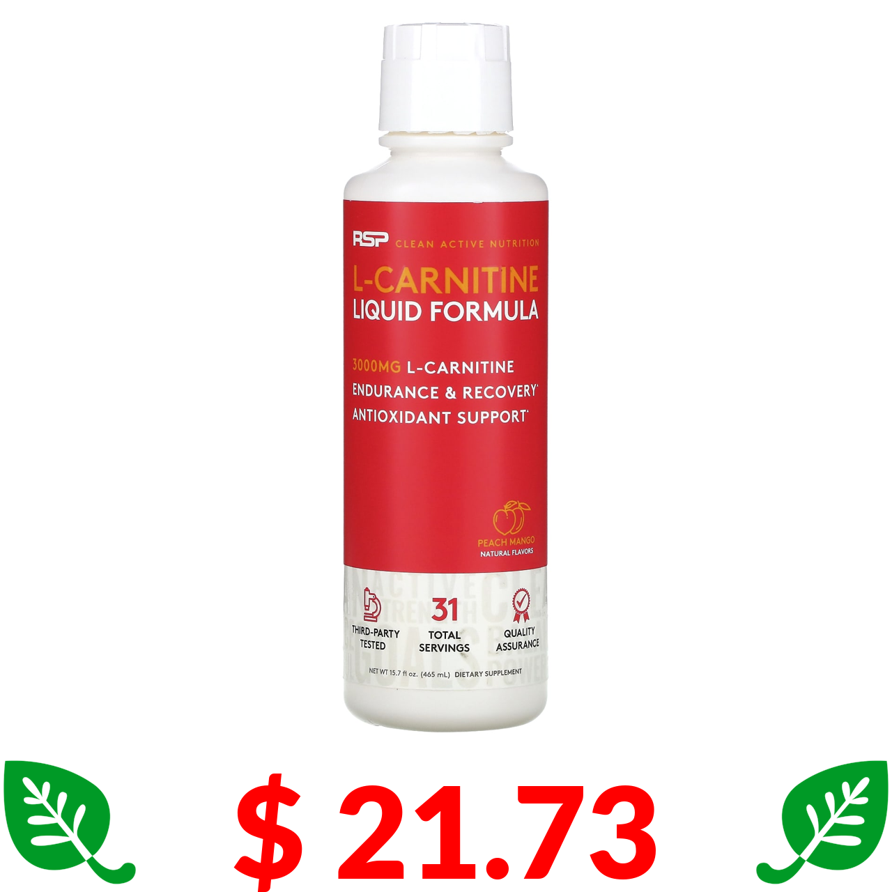 $ 21.73 РСП Нутринеш, L-карнитин, коррекция веса, персик и манго, 3000 мг, 473 мл (16 жидк. унций)