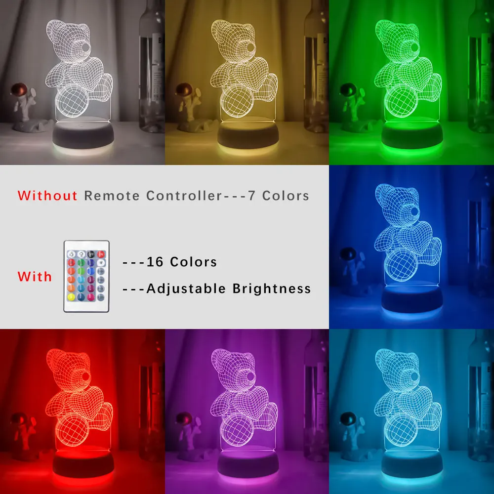 "3d Illusion Baby Night Light Bear with Heart Led Touch Switch Colorful Atmosphere for Home Decoration Light Table Lamp Bedside" * Buy Now Just For 20$