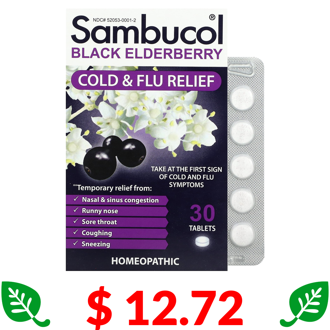$ 12.72 Sambucol, чорна бузина, засіб від застуди та грипу, 30 швидкорозчинних таблеток