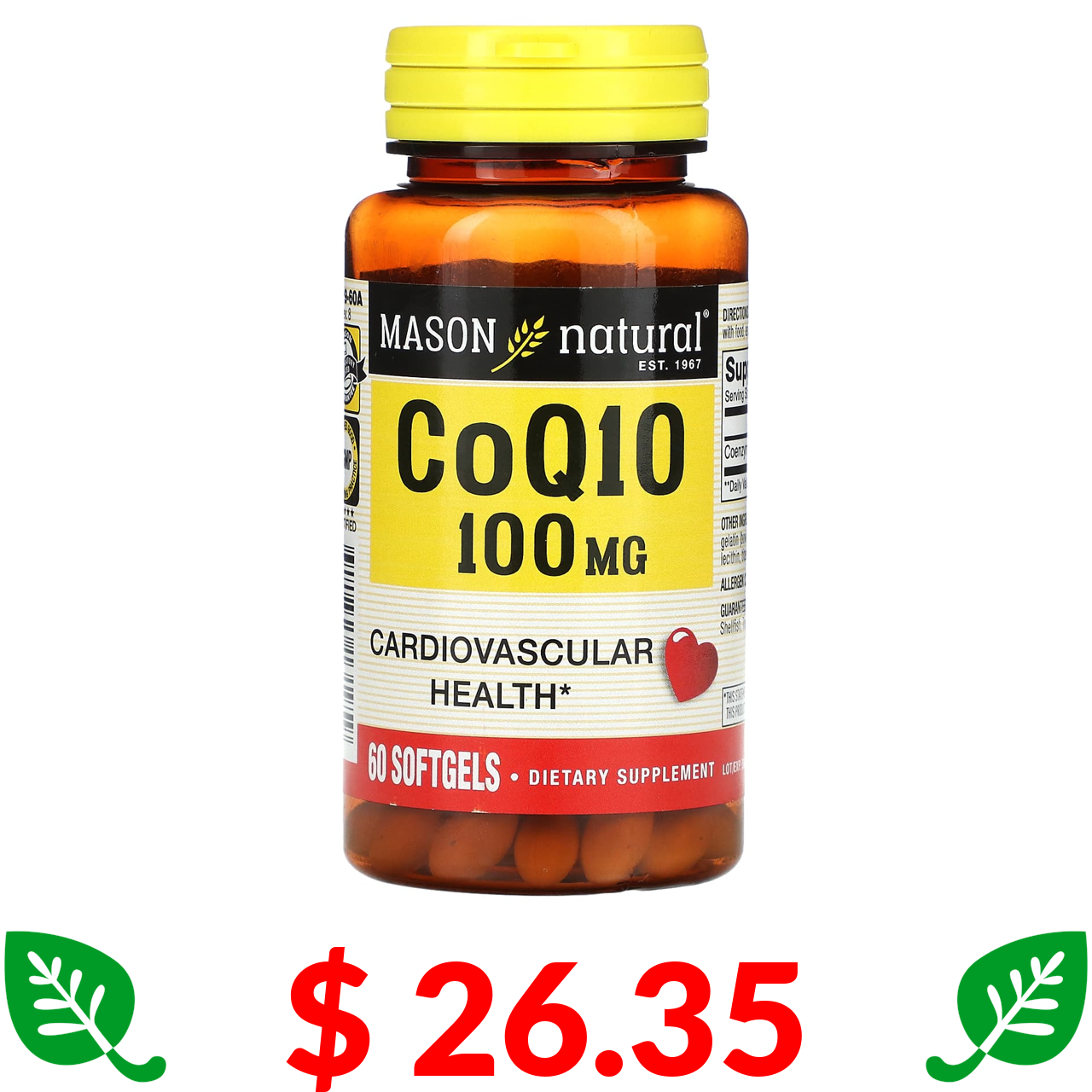 $ 26.35 Mason Natural, Co Q10, 100 mg, 60 Softgels