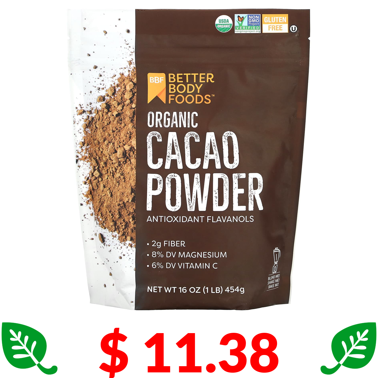 $ 11.38 BetterBody Foods, Organic Cacao Powder, 1 lb (454 g)
