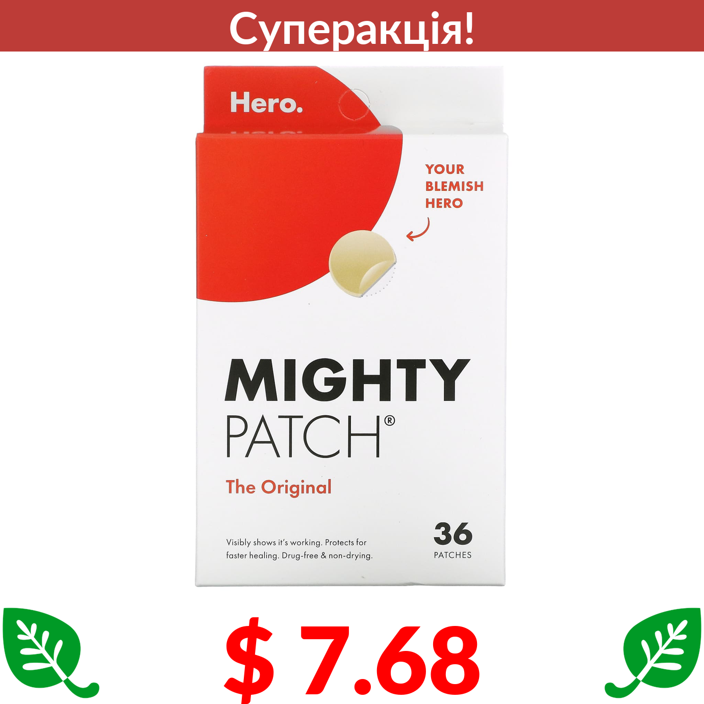 $ 7.68 Hero Cosmetics, Mighty Patch, пластирі проти недоліків, оригінальні, 36 шт.
