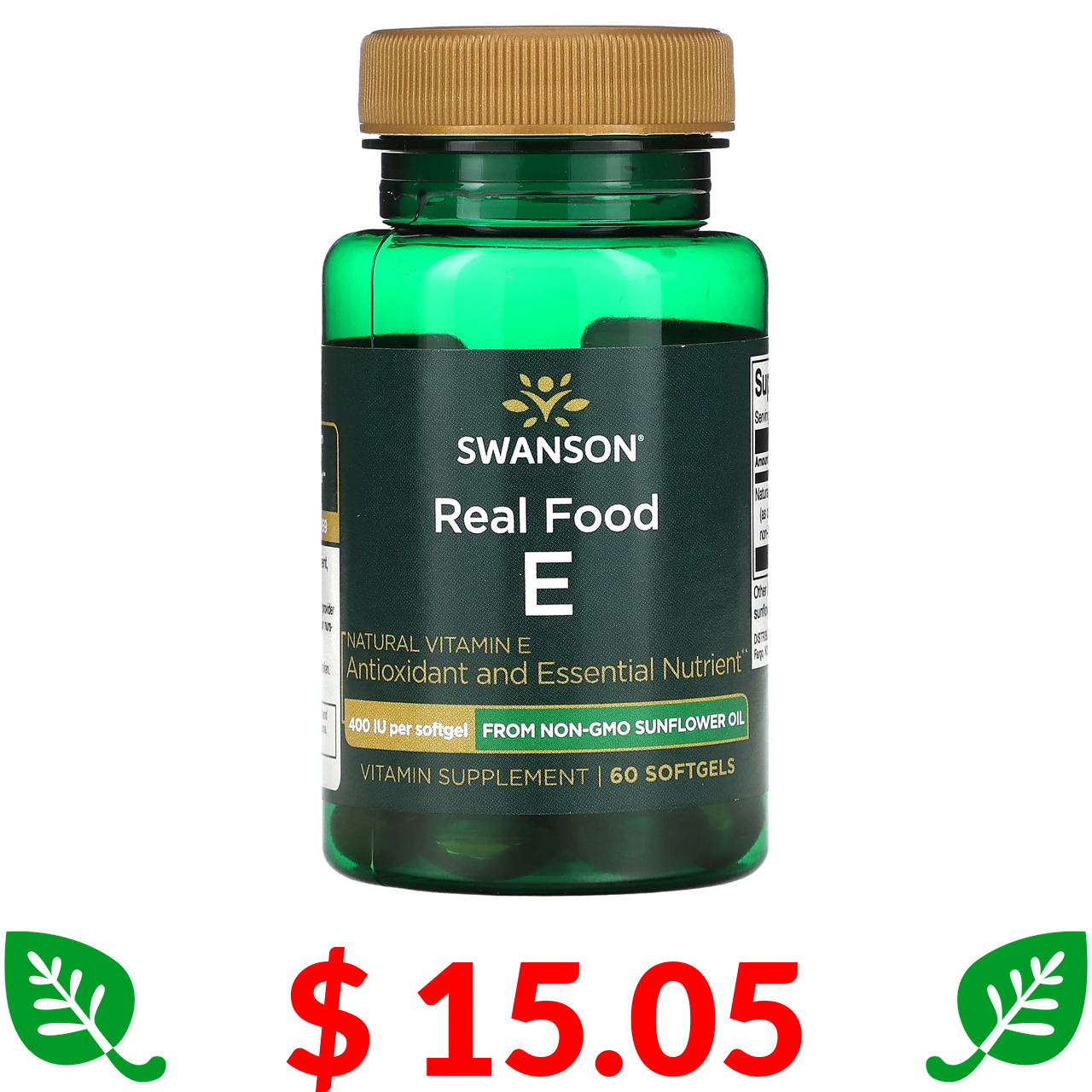 $ 15.05 Swanson, Real Food E, вітамін E, 400 МО, 60 капсул