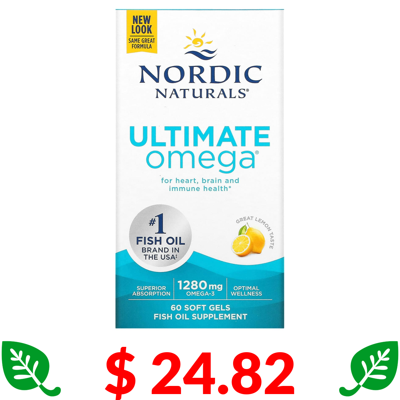 $ 24.82 Nordic Naturals, Ultimate Omega, лимон, 640 мг, 60 капсул