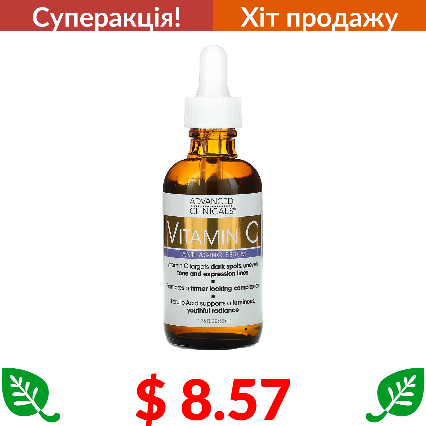 $ 8.57 Advanced Clinicals, вітамін С, антивікова сироватка, 52 мл (1,75 рідк. унції)