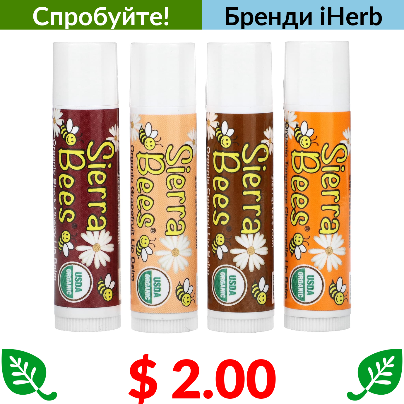 $ 2.00 Sierra Bees, набір органічних бальзамів для губ, 4 штуки по 4,25 г (0,15 унції)