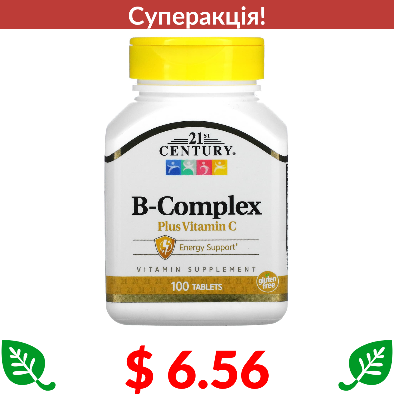 $ 6.56 21st Century, комплекс вітамінів групи B з вітаміном C, 100 таблеток