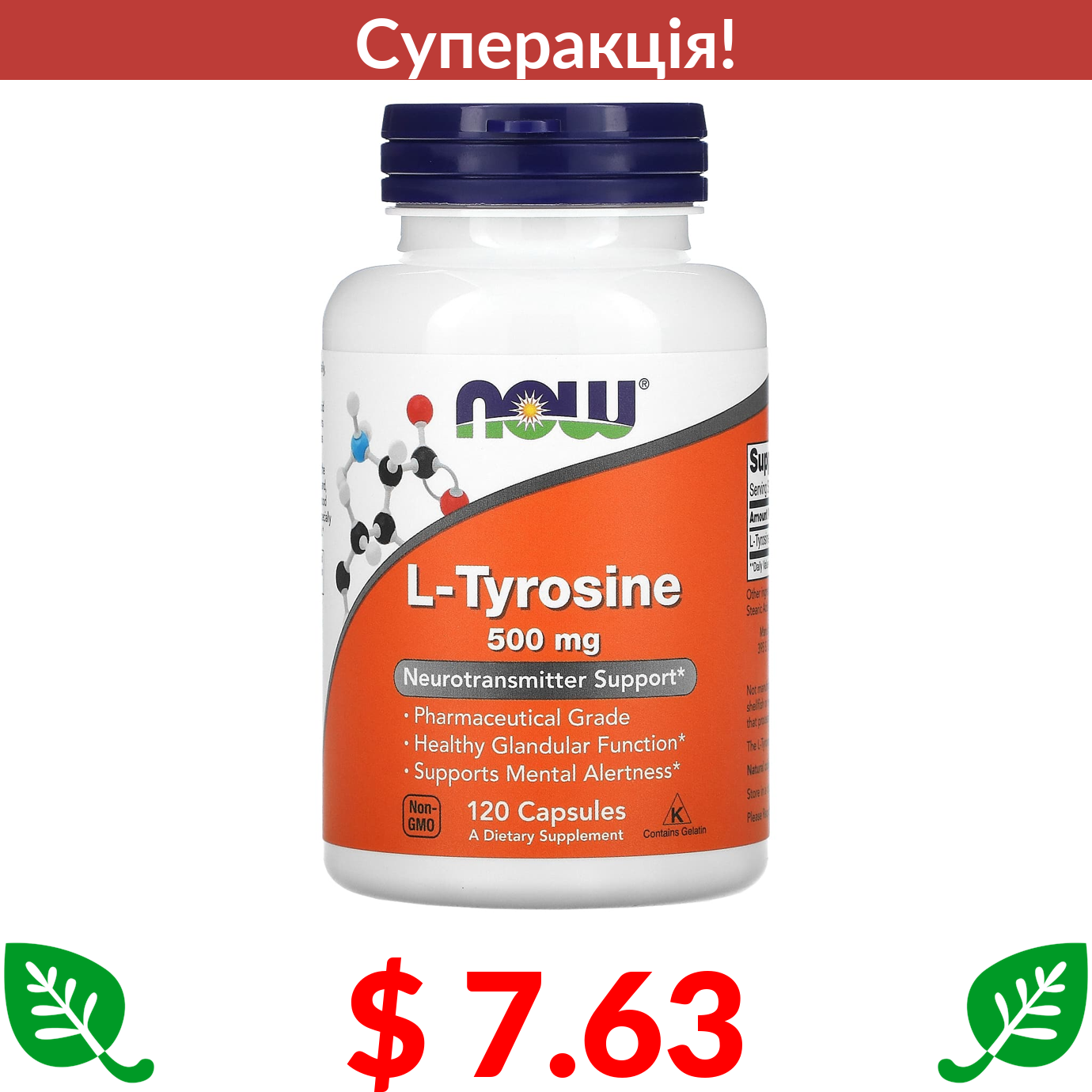 $ 7.63 Now Foods, L-тирозин, 500 мг, 120 капсул