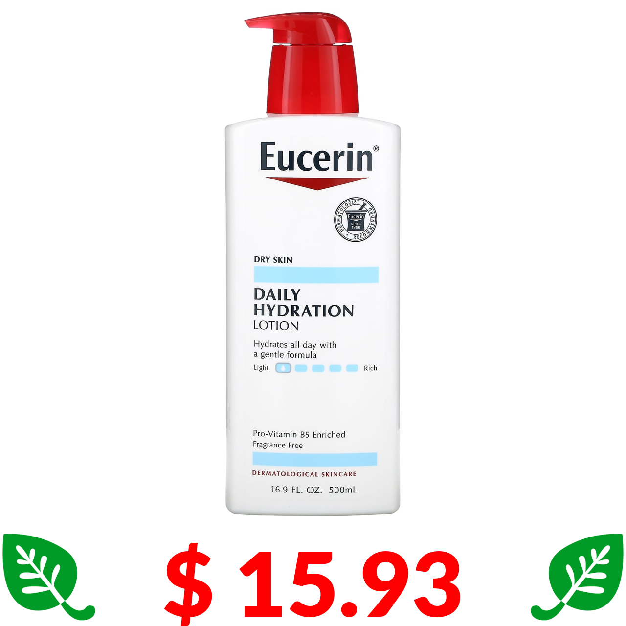 $ 15.93 Eucerin, щоденний зволожувальний лосьйон, без ароматизаторів, 500 мл (16,9 рідк. унції)