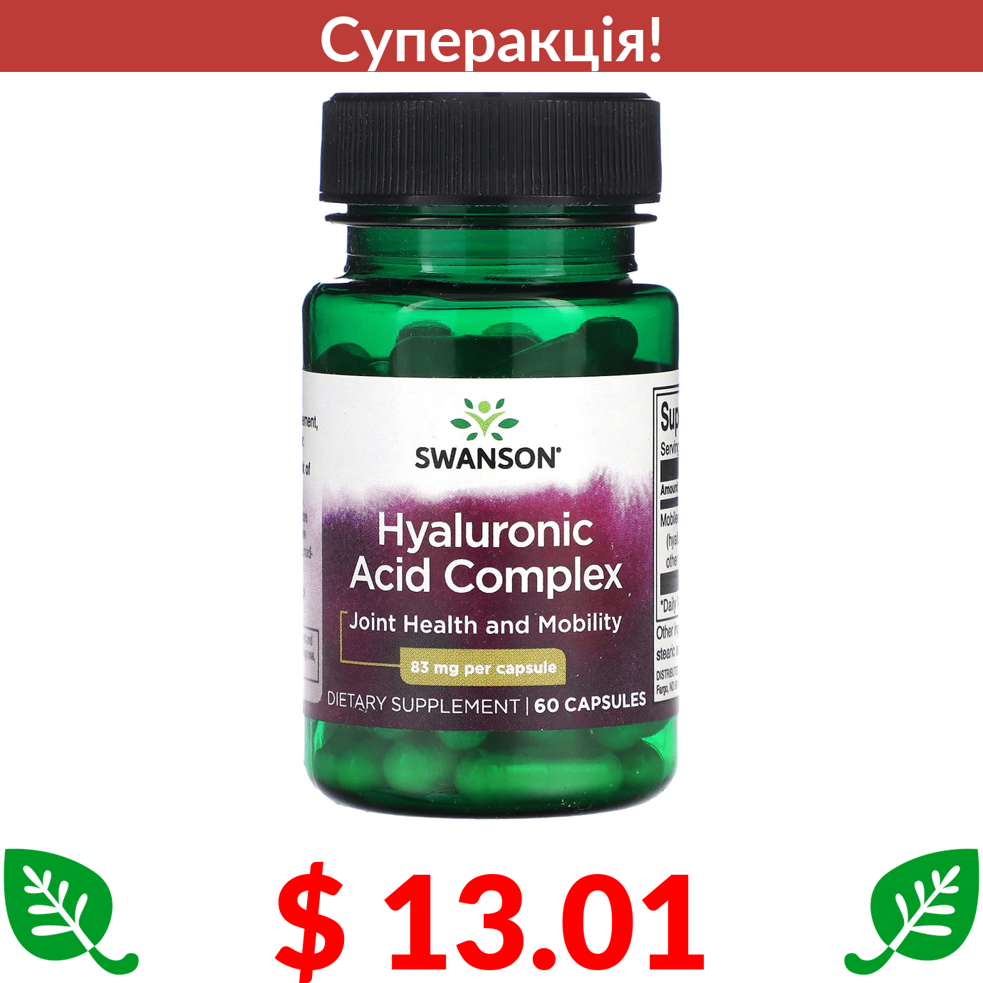 $ 13.01 Swanson, Hyaluronic Acid Complex, 83 mg , 60 Capsules