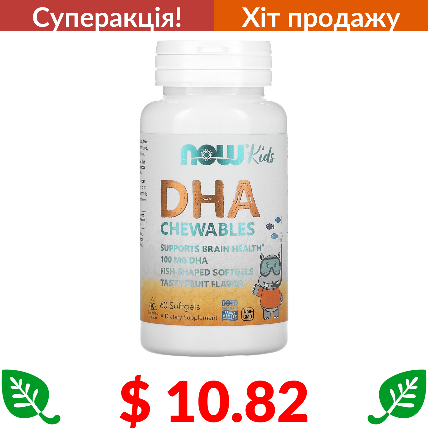 $ 10.82 Now Foods, жувальна ДГК для дітей, зі смаком фруктів, 60 жувальних таблеток