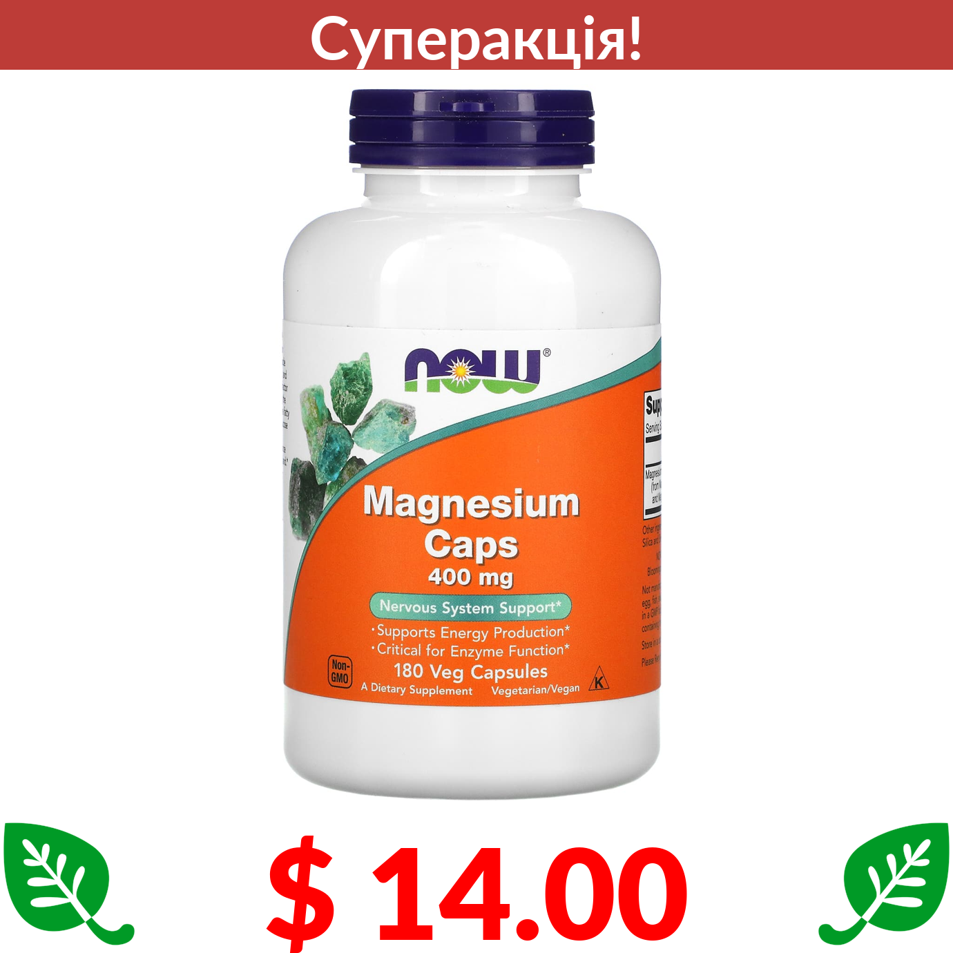 $ 14.00 Now Foods, капсули з магнієм, 400 мг, 180 вегетаріанських капсул