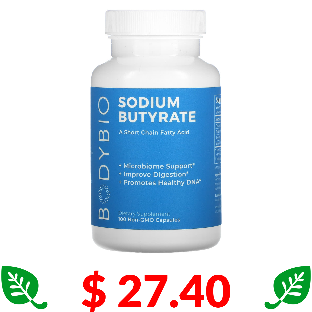 $ 27.40 BodyBio, бутират натрію, 100 капсул без ГМО