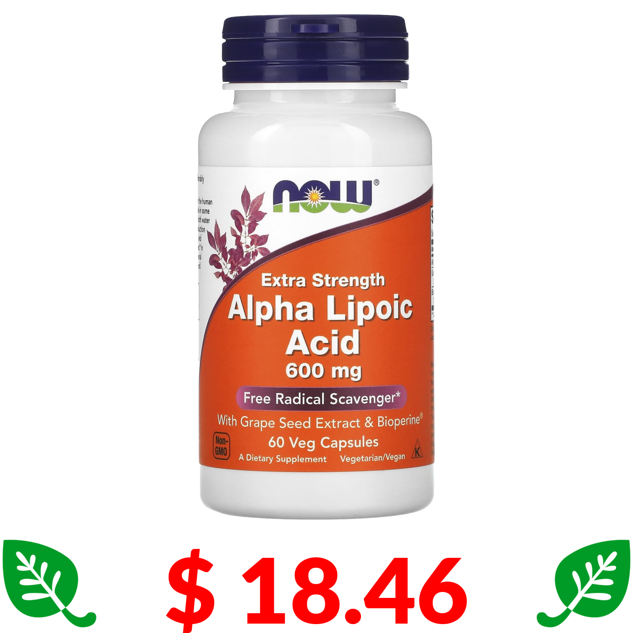 $ 18.46 Now Foods, альфа-ліпоєва кислота, посилена дія, 600 мг, 60 вегетаріанських капсул