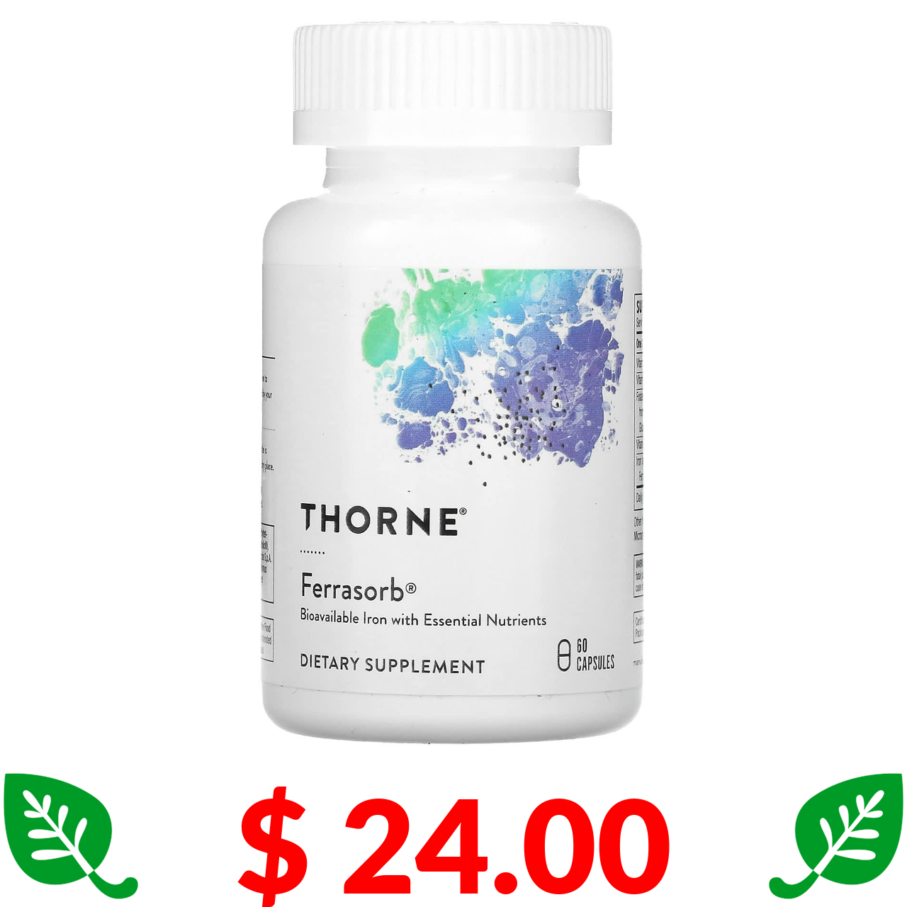 $ 24.00 Thorne, Ferrasorb, залізо з кофакторами, 60 капсул