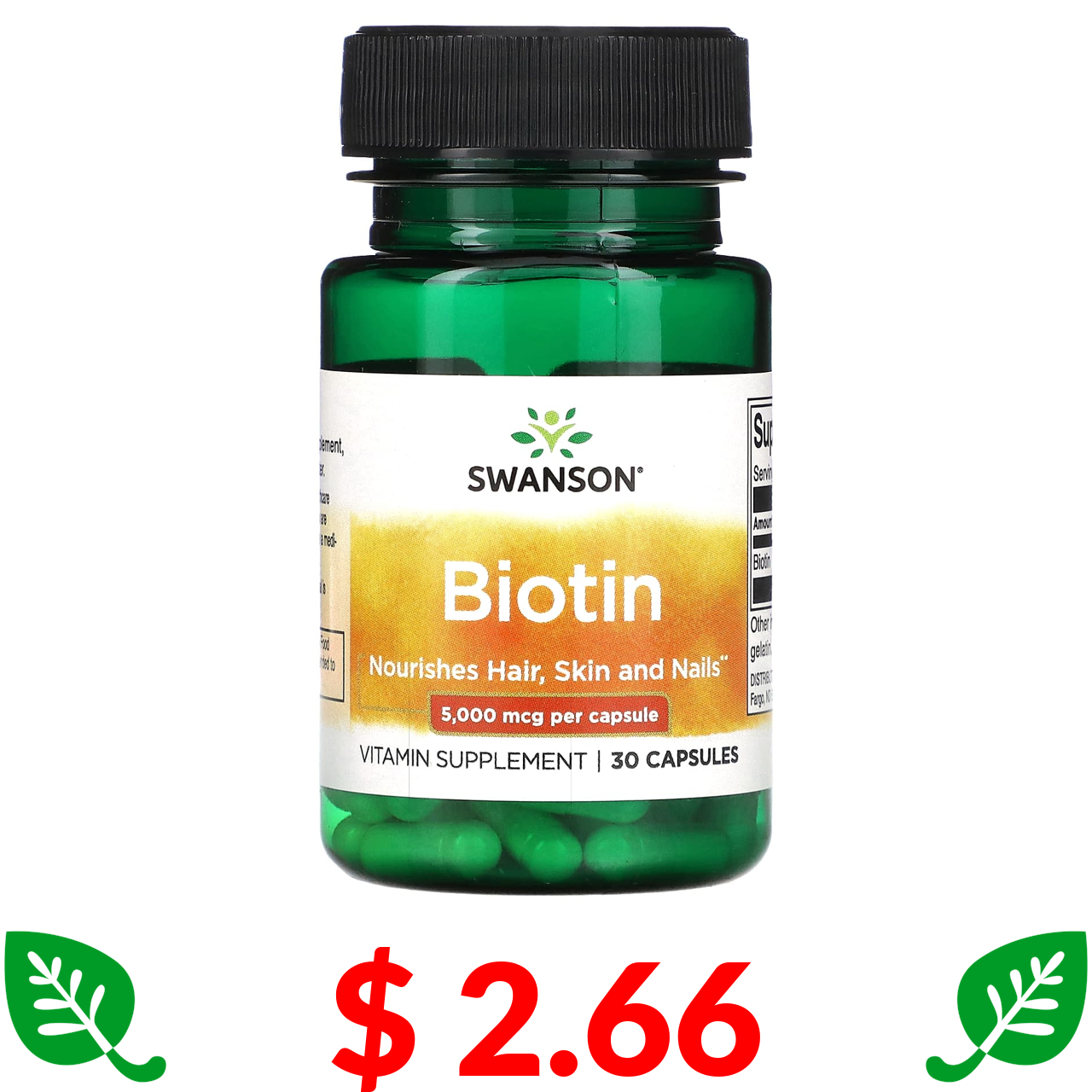 $ 2.66 Swanson, біотин, 5000 мкг, 30 капсул
