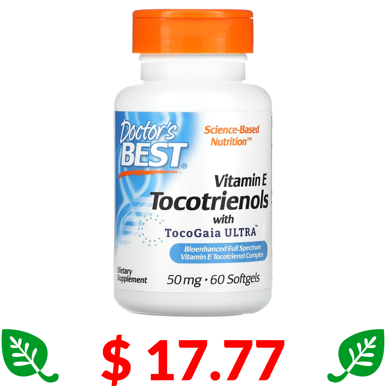 $ 17.77 Doctor's Best, вітамін E з токотриєнолами та TocoGaia Ultra, 50 мг, 60 капсул