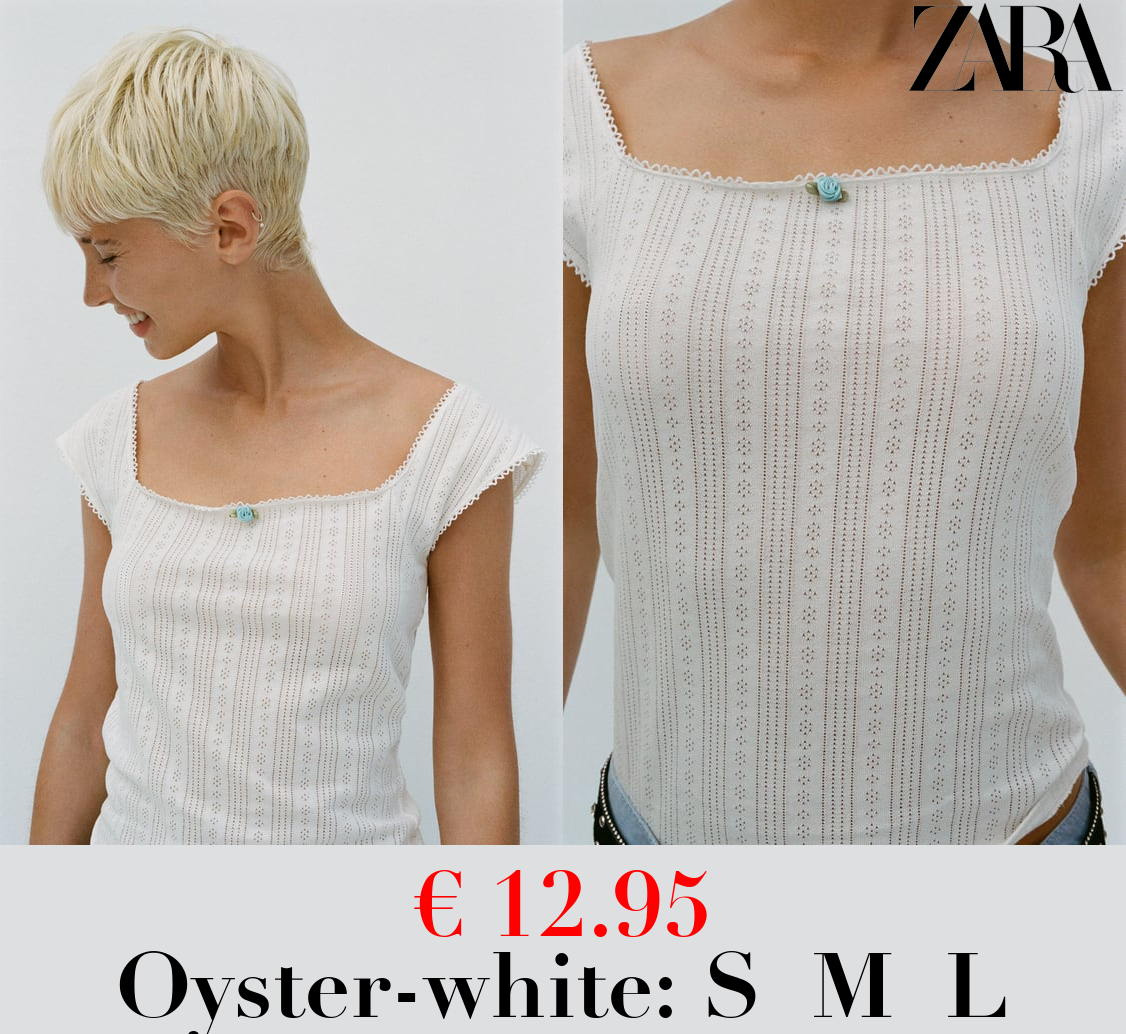 € 17.95 COTTON T-SHIRT WITH CROCHET SLEEVES