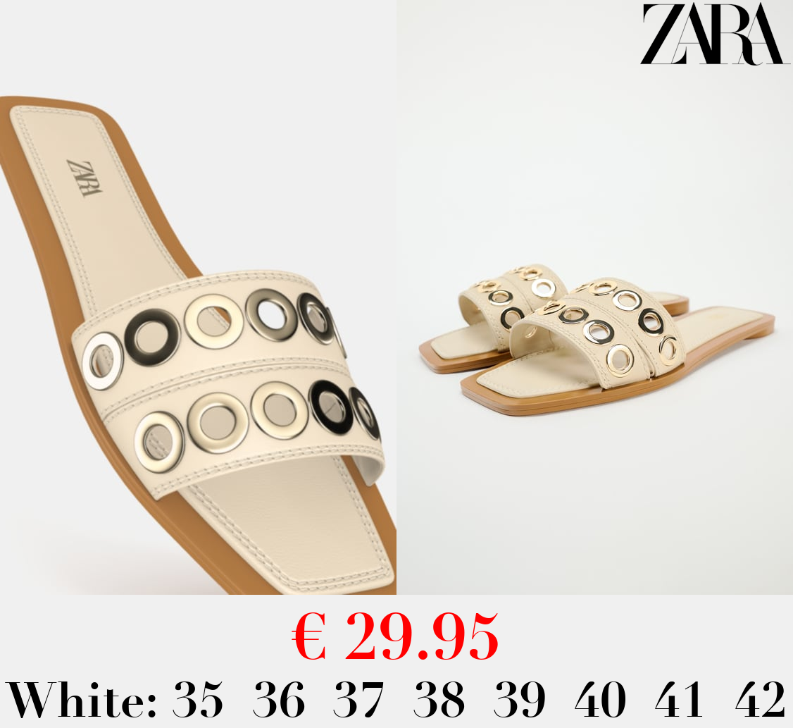 € 29.95 FLAT LEATHER SLIDER SANDALS WITH METAL APPLIQUÉS