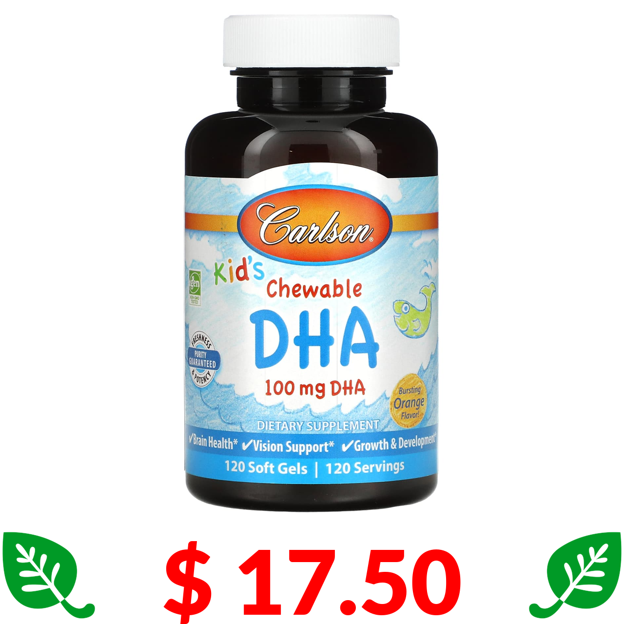 $ 17.50 Carlson, жувальна ДГК для дітей, з насиченим апельсиновим смаком, 100 мг, 120 капсул