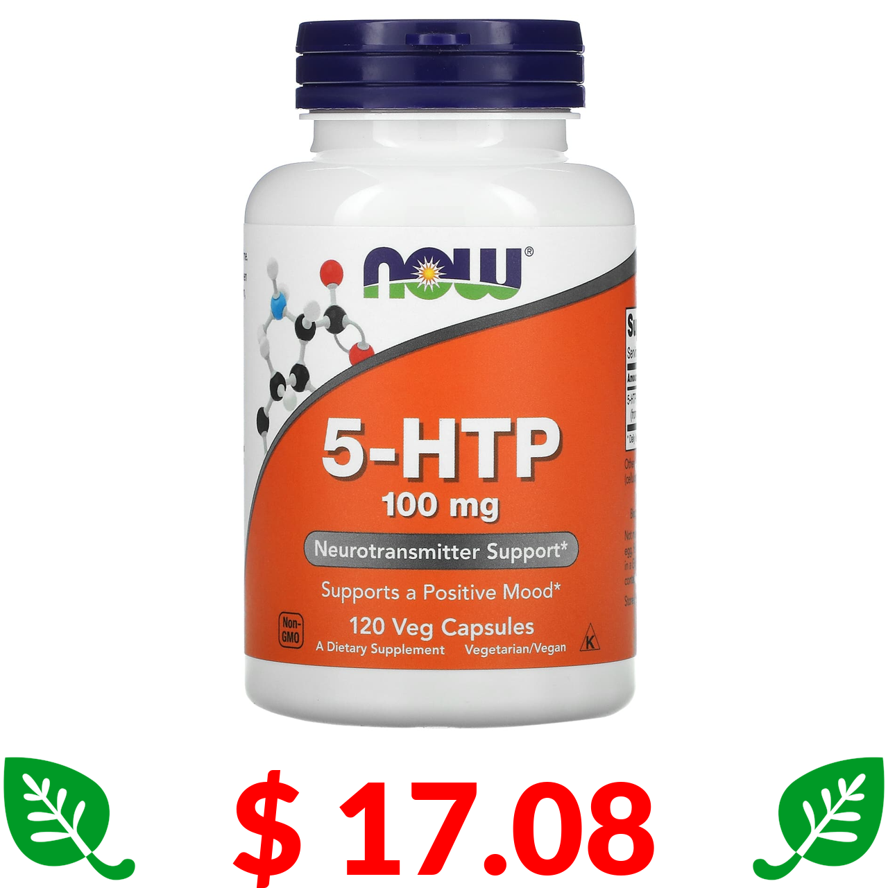 $ 17.08 Now Foods, 5-гідрокситриптофан, 100 мг, 120 рослинних капсул