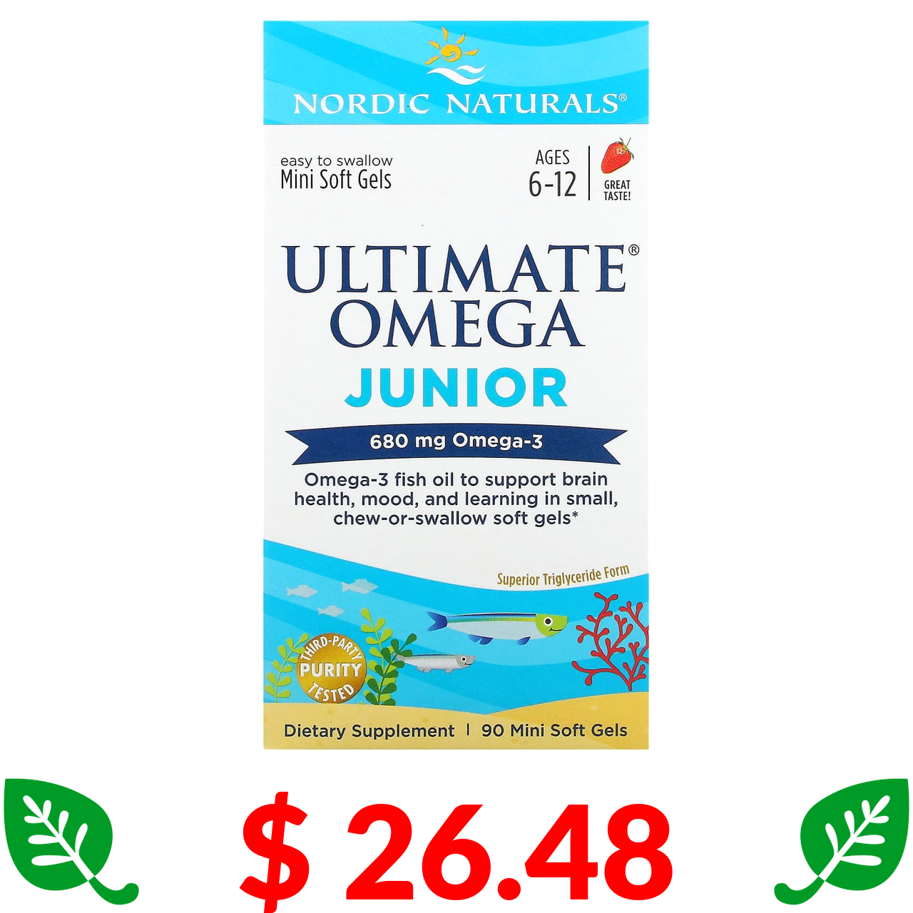 $ 30.76 Nordic Naturals, ProOmega 2000 Jr., Полуниця, 650 мг, 60 м'яких капсул