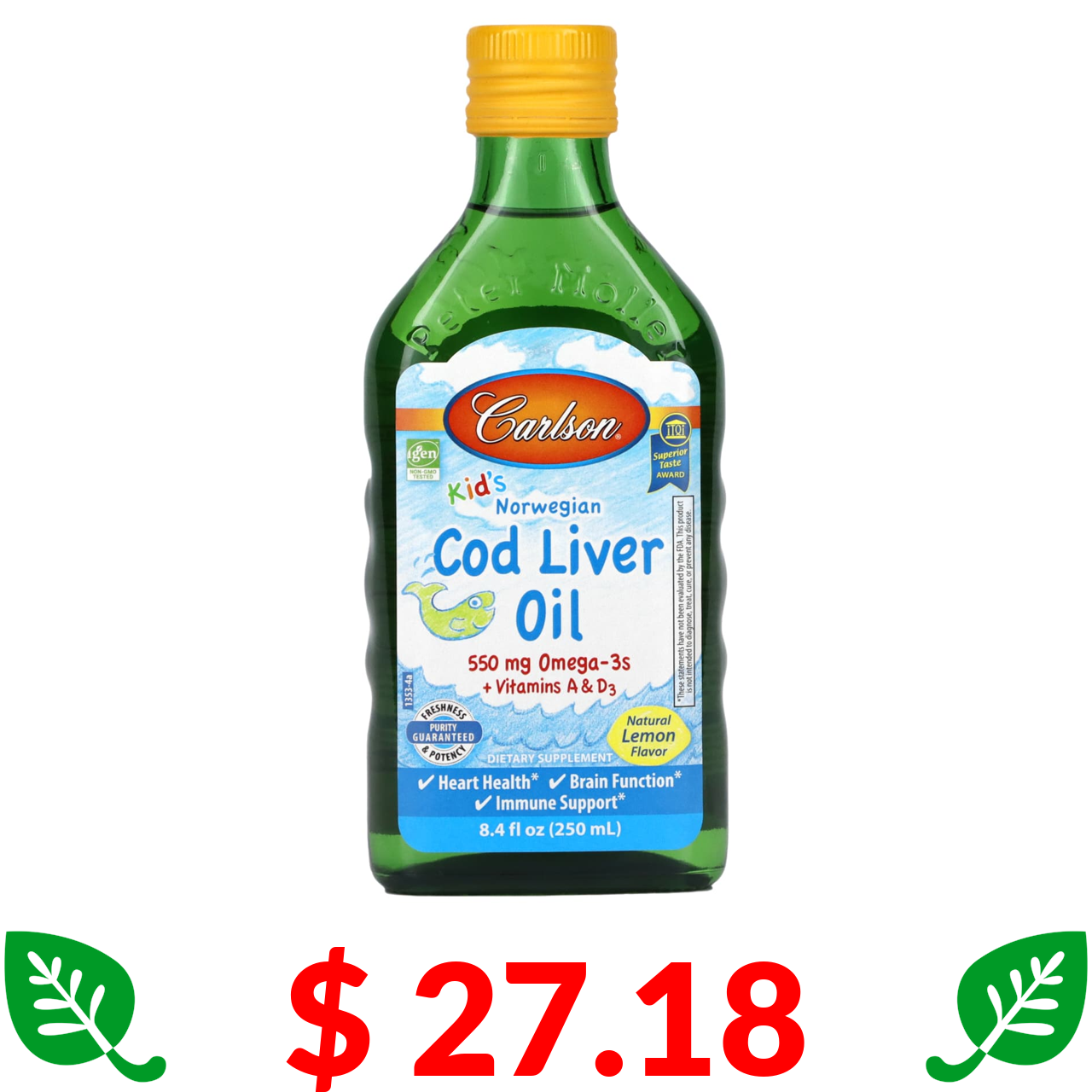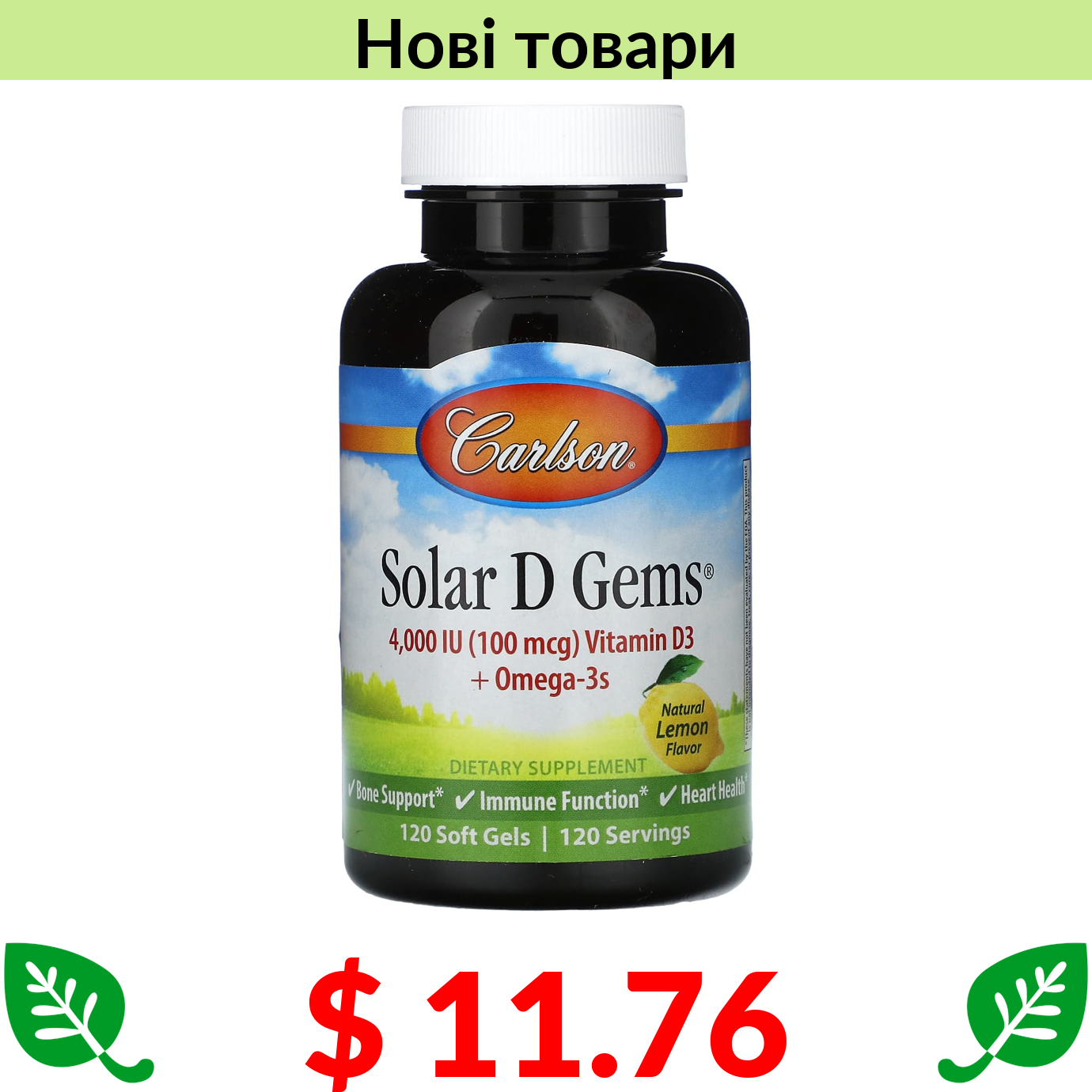 $ 11.76 Carlson, Solar D Gems, Natural Lemon, 100 mcg (4,000 IU), 120 Soft Gels