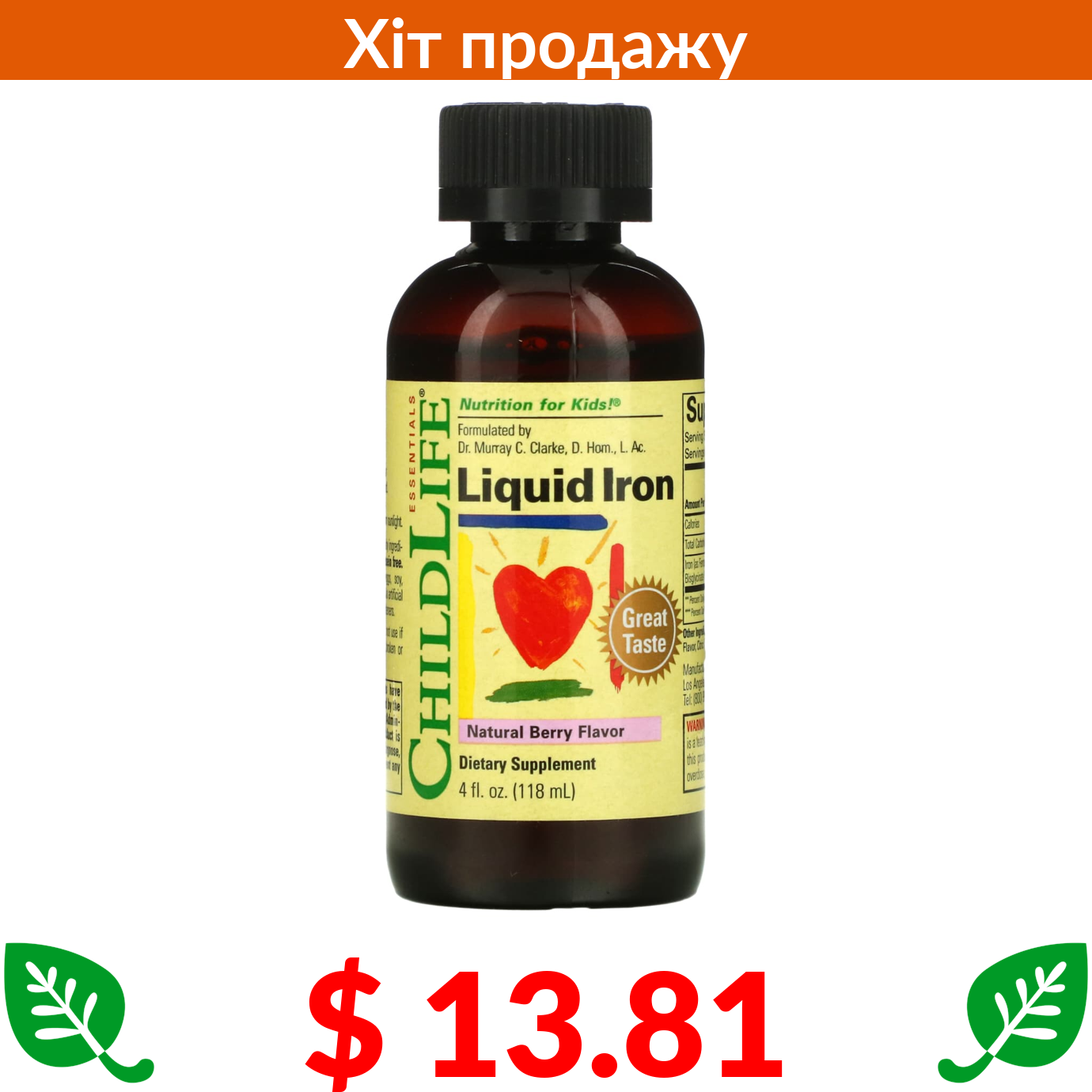 $ 13.81 ChildLife Essentials, рідке залізо, зі смаком натуральних ягід, 118 мл (4 рідк. унції)