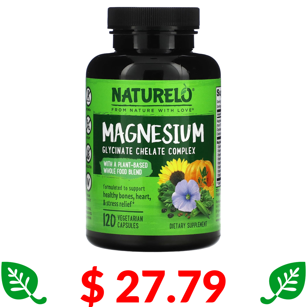 $ 27.79 NATURELO, хелат гліцинат магнію, 200 мг, 120 вегетаріанських капсул