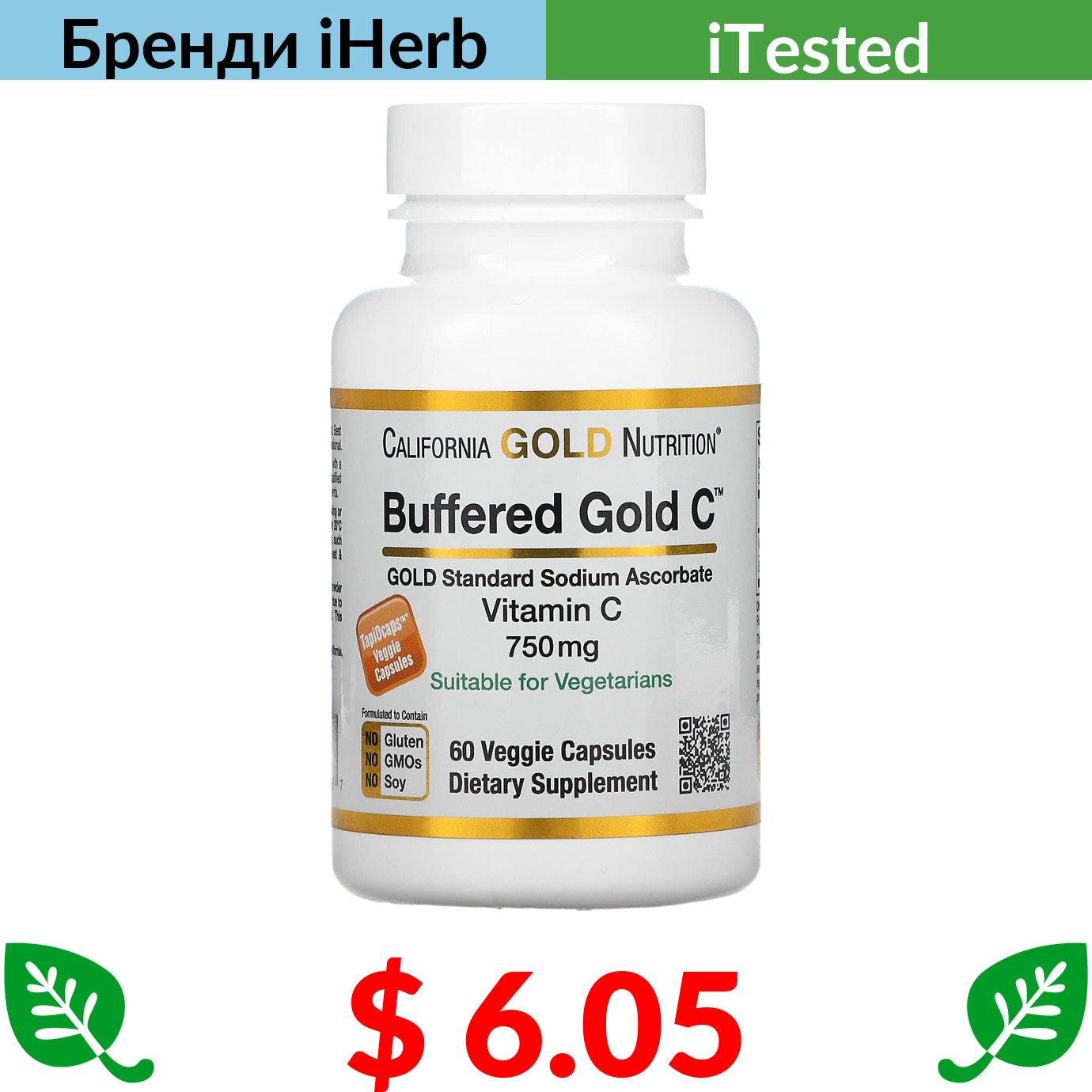 $ 6.05 California Gold Nutrition, Буферизований вітамін C в капсулах, 750 мг, 60 рослинних капсул