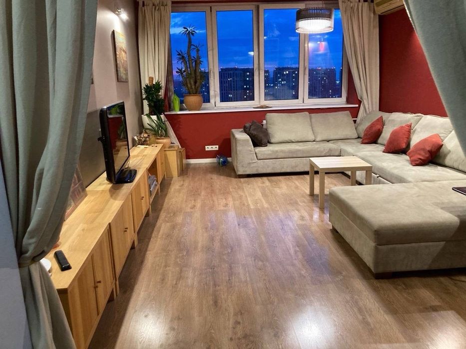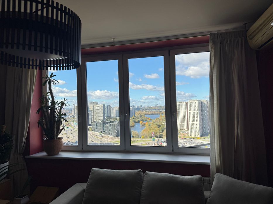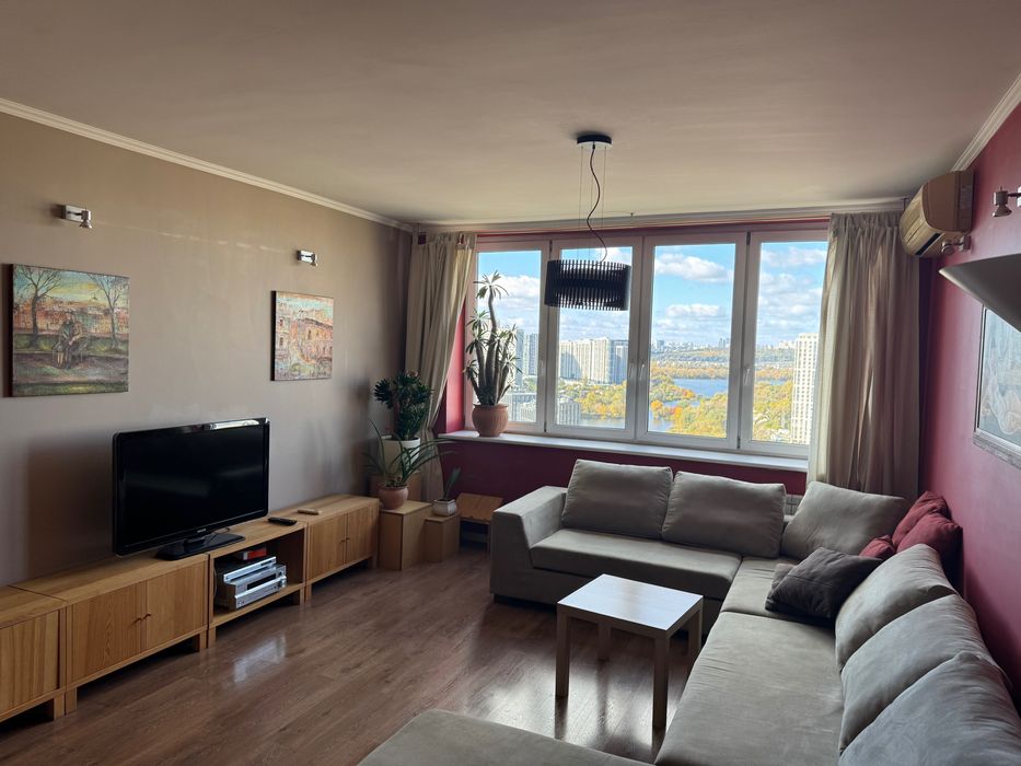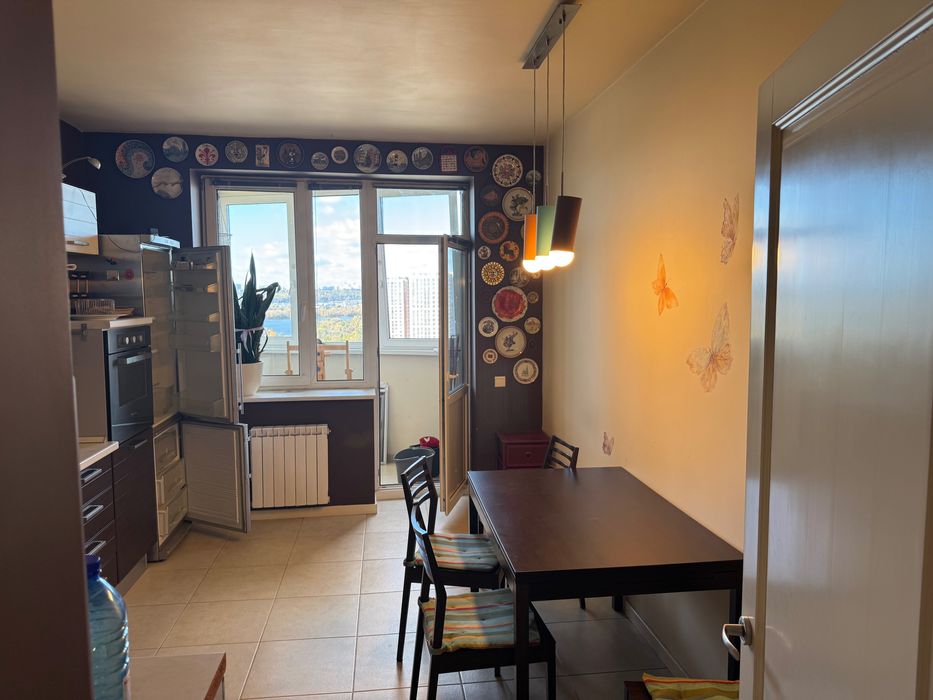 Здається в оренду 3-кімнатна квартира площею 94 м², 21/25 поверх. Видова, сучасна, світла квартира в цегляному, теплому будинку. Висота стелі — 2,75 м. Три окремі кімнати, два санвузли. У квартирі є всі необхідні меблі та побутова техніка. Лічильники на воду, світло та опалення. Від станції метро «Осокорки» — п’ять хвилин пішки. Поруч магазини, гімназія, місця для відпочинку. У під’їзді — консьєрж, домофон. В будинку є резервне живлення (генератор) - під час відключень світла ліфт працює і вода є.