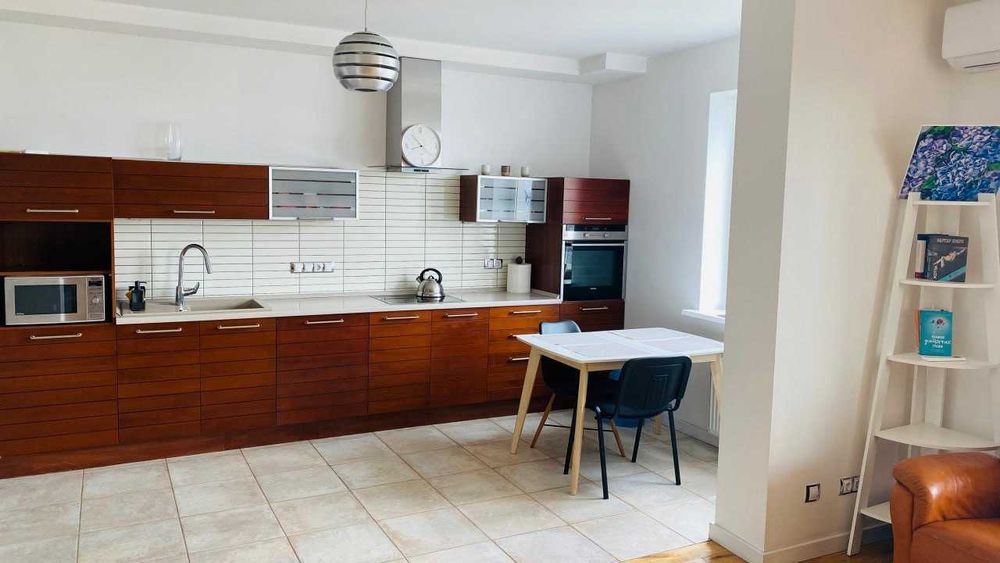 Планування та оснащення: Простора вітальня-студія, 2 окремі спальні, гардеробна кімната. 2 ванні кімнати, квартира повністю мебльована. Є бойлер, духова шафа, посудомийна та пральна машини