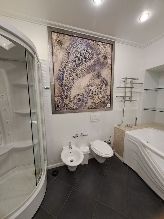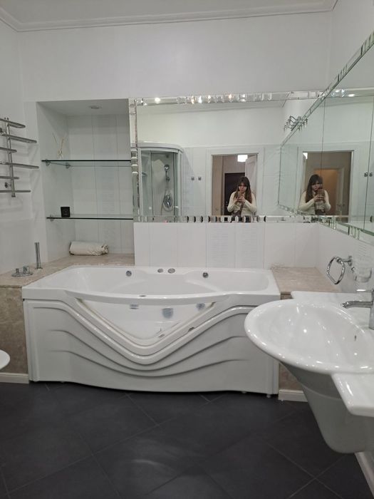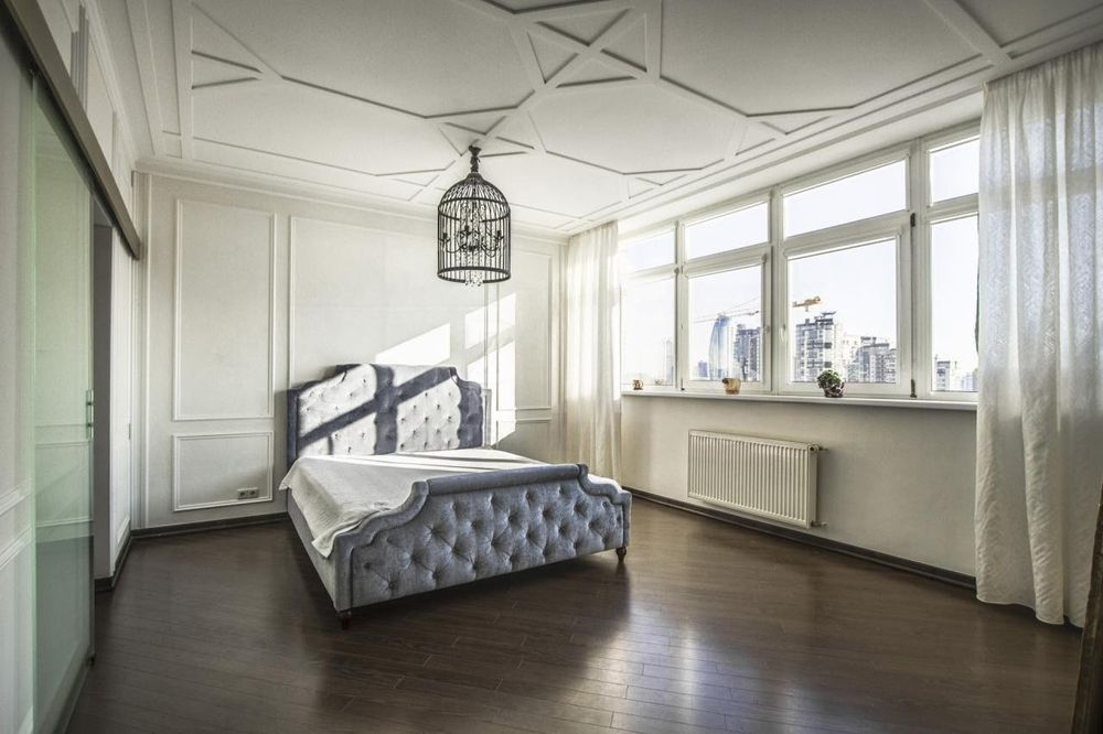 Оренда стильної, видової 3к квартири, площею 135 м2 в центрі міста. Кухня-студія, дві окремі кімнати, кабінет, санвузол (ванна/душ, біде). Зовсім поряд метро "Палац Україна".