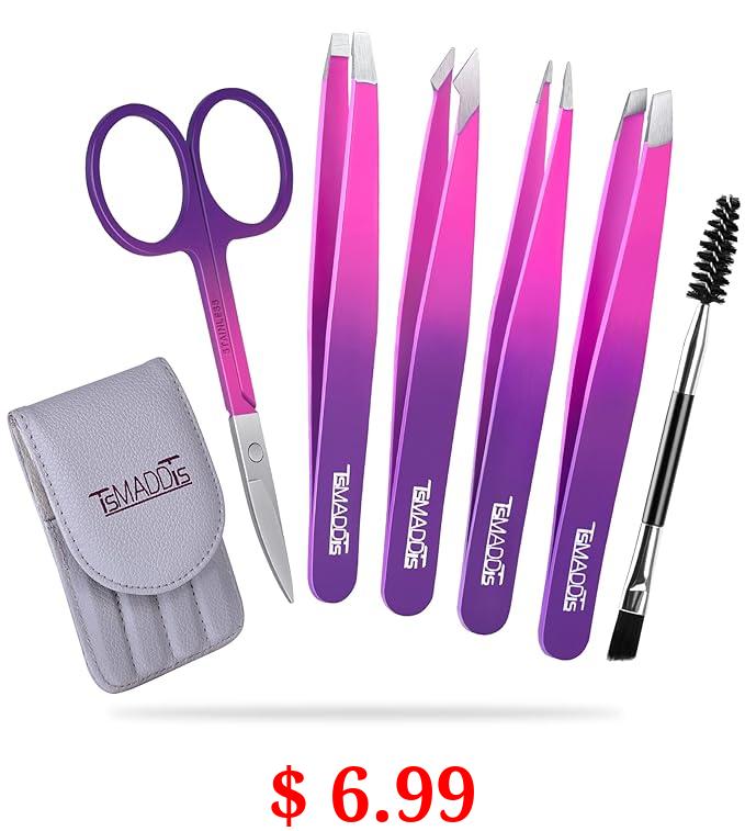 $ 6.99 Eyebrow Tweezer Set, TsMADDTs 6 Pcs Tweezers Set for Women, Precision Tweezer for Eyebrows with Curved Scissors for Ingrown Hair, Hair Plucking Daily Beauty Tools (Pink&Purple)