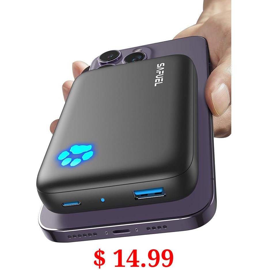 $ 14.99 SAFUEL Magnetic Portable Charger, 10000mAh Wireless Magnetic Power Bank, 20W PD QC3.0 Fast Charging Battery Bank, USB C in&Out Battery Pack for iPhone 14 13 12 Pro Max Mini Plus and Magnetic Case