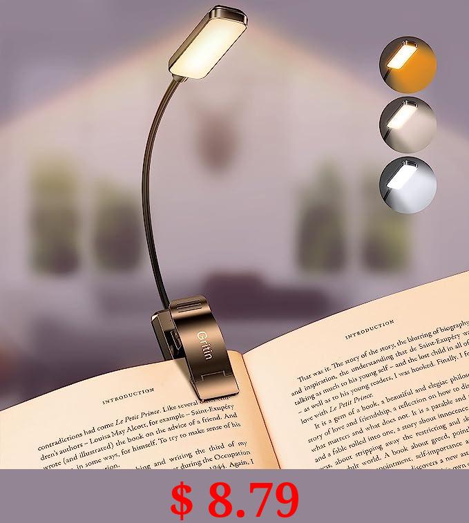 $ 8.79 Gritin 9 LED Rechargeable Book Light for Reading in Bed - Eye Caring 3 Color Temperatures,Stepless Dimming Brightness,80 Hrs Runtime Small Lightweight Clip On Book Reading Light for Kids,Studying