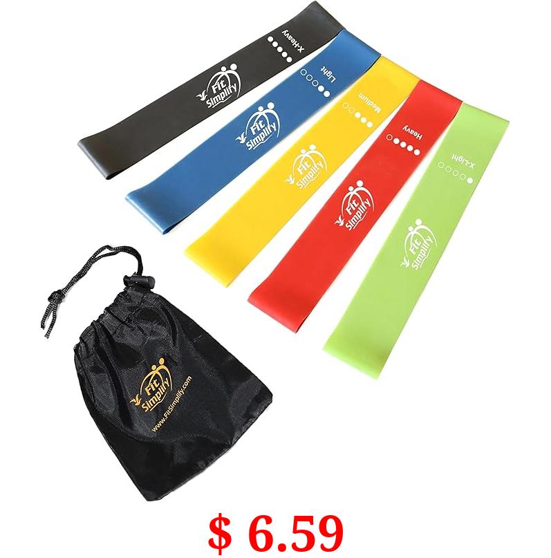 $ 6.59 Fit Simplify Resistance Loop Exercise Bands with Instruction Guide and Carry Bag, Set of 5