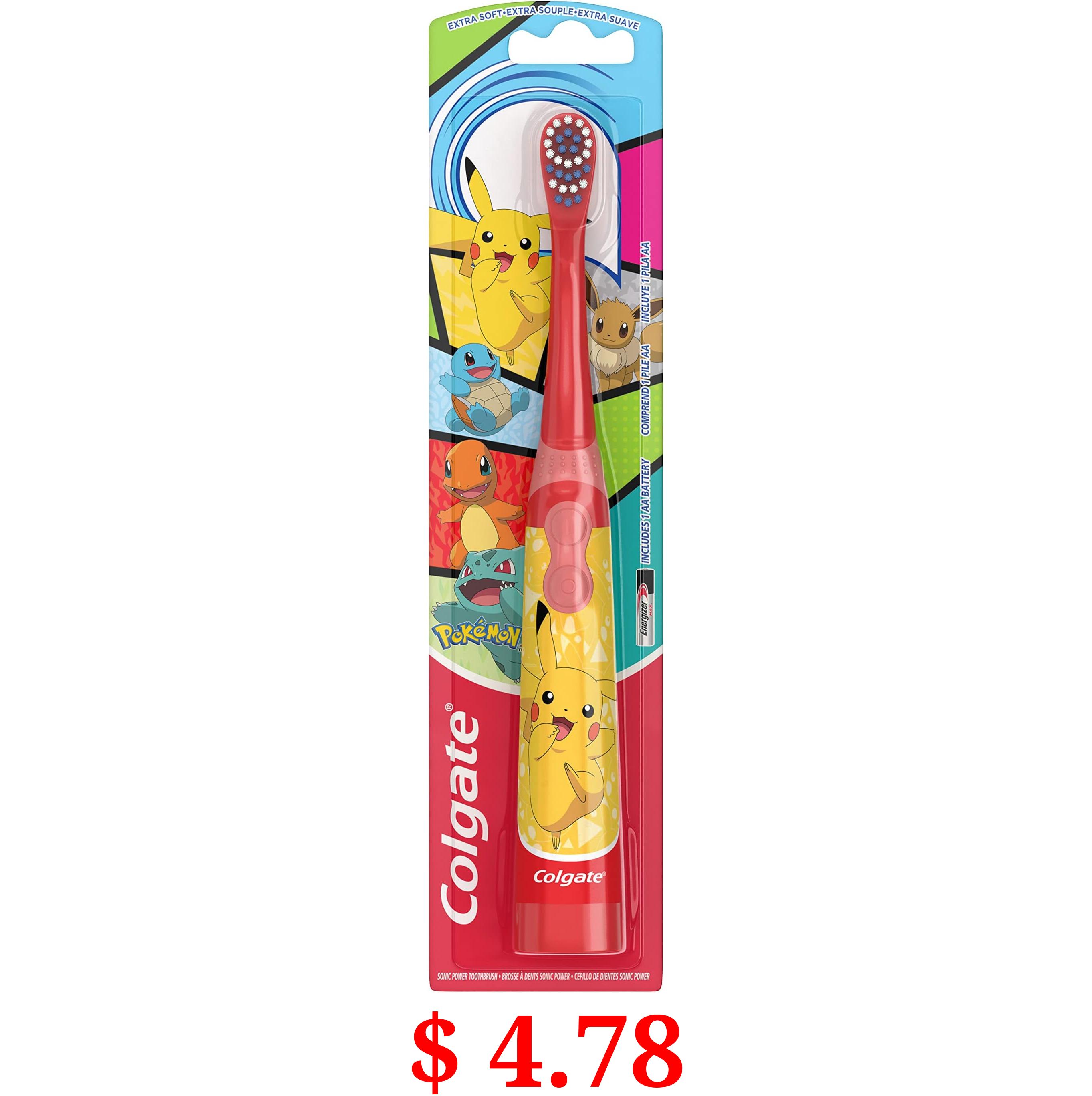 $ 4.78 Colgate Kids Battery Powered Toothbrush, Kids Battery Toothbrush with Included AA Battery, Extra Soft Bristles, Flat-Laying Handle to Prevent Rolling, Pokemon Toothbrush, 1 Pack (Style May Vary)