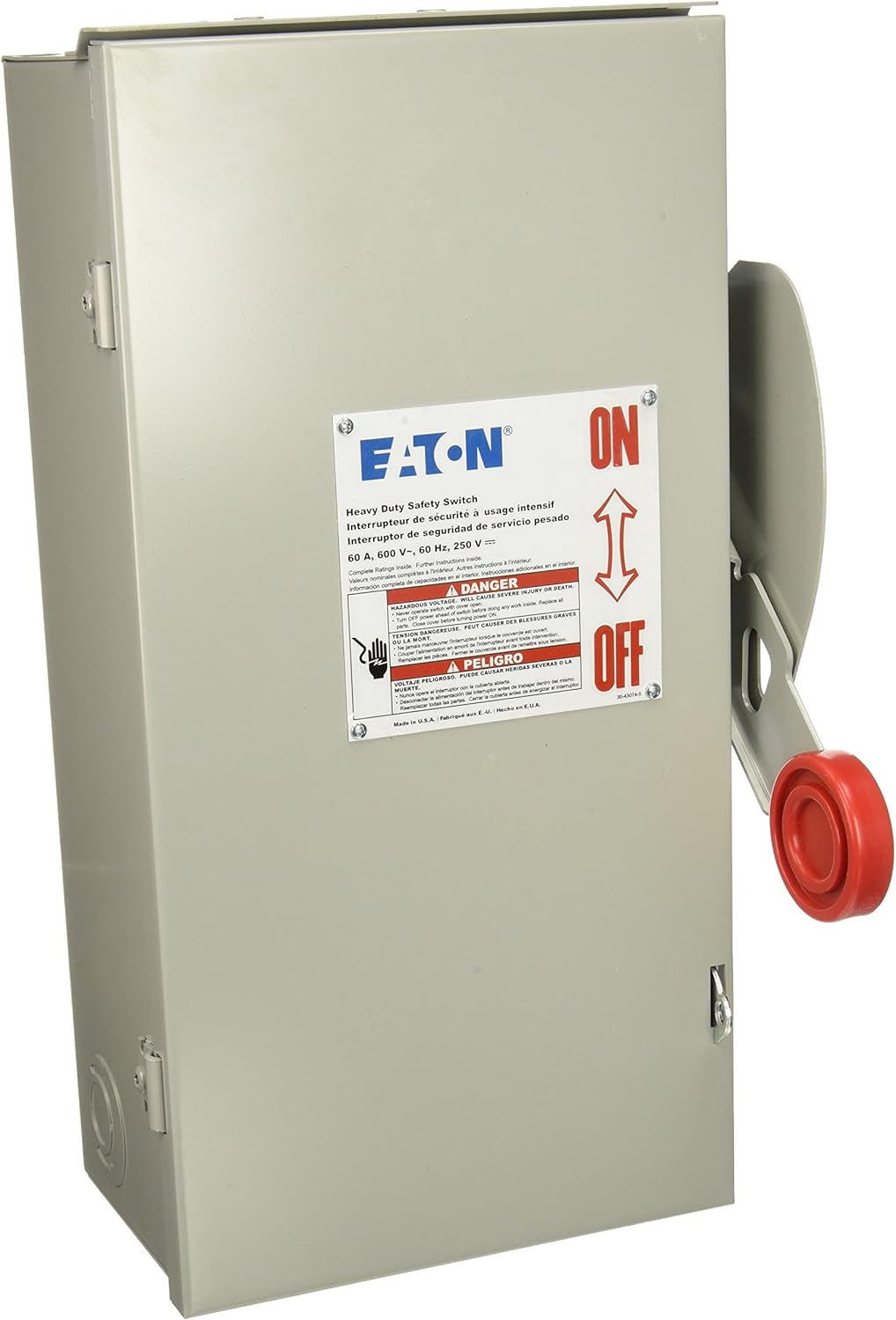 Description 600A/3P HD NF Safety Switch 600V Nema 3R Eaton Heavy Duty Single-Throw Non-Fused Safety Switch, Single-Throw, 600A, Nema 3R, Painted Galvanized Steel,, Non-Fusible, Three-Pole, Three-Wire, 200 At 240 Vac TD 3 PH, 400 At 480 Vac TD 3 PH, 500 At 600 Vac TD 3 PH