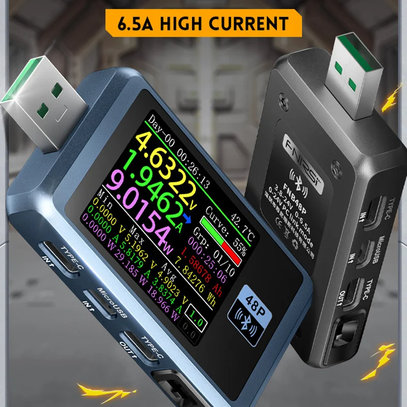 dvtOcBAaJKHere you can buy 4-24V 0-6.5A FNB48P USB Tester Voltmeter Ammeter Battery Capacity Test Type-C Fast Charge Detect PD Trigger Real Time Monitoring with free delivery to your post office.