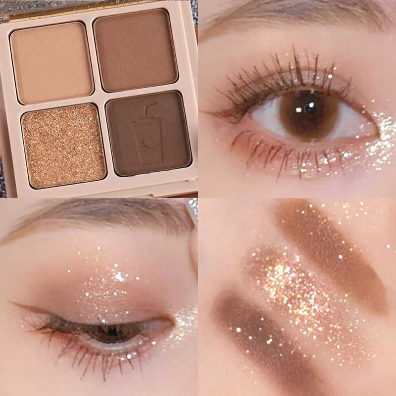 "4 Color Peach Matte Eyeshadow Palette Easy To Color Glitter Pearlescent Earthy Shiny Eye Shadow Palette Pigments Eyes Makeup" * Buy Now Just For 1$