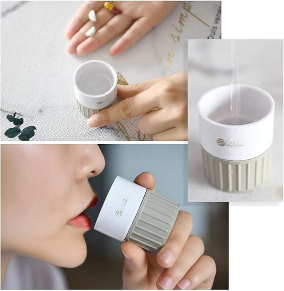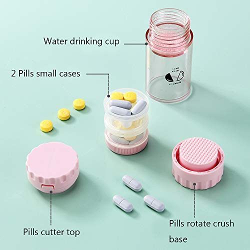 About this item The most portable pill box -This four- in -one medicine box is 3 .74 x1 .57x1 .57 inches, however, it has the four functions of cutter , grinder , medicine storage box (3 cases)and water cup, and has an excellent simple and beautiful appearance design .