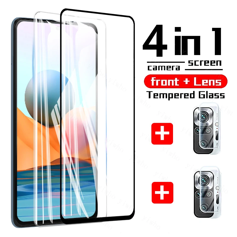4 In 1 Protective Glass for Xiaomi Redmi Note 10 Pro Max 10S 10 5G Safety Glass Screen Protector Camera Lens Note10 10Pro 10 S - Купить с бесплатной доставкой