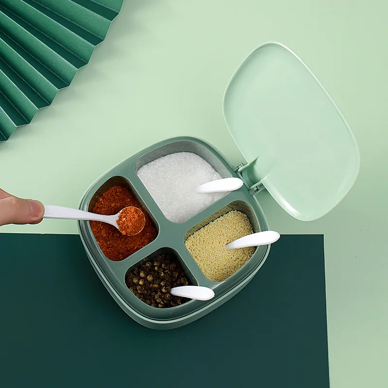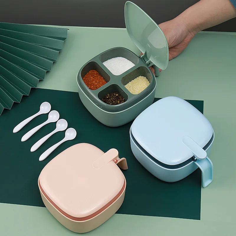 4 In 1 Seasoning Box with Spoon Spice Jar Multi Compartment Herb Spice Jars Pots Kitchen Accessories Plastic Condiment Container - Купить с бесплатной доставкой