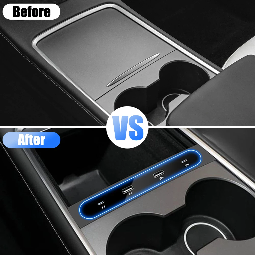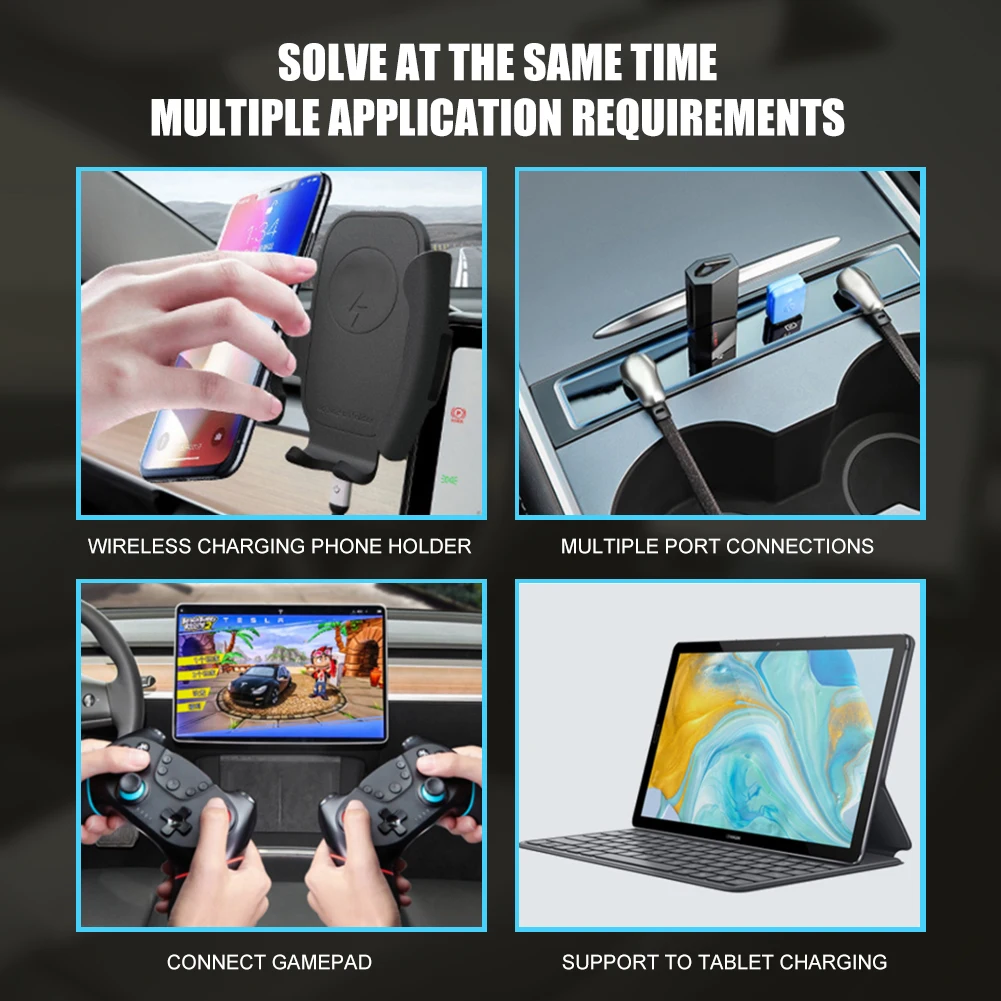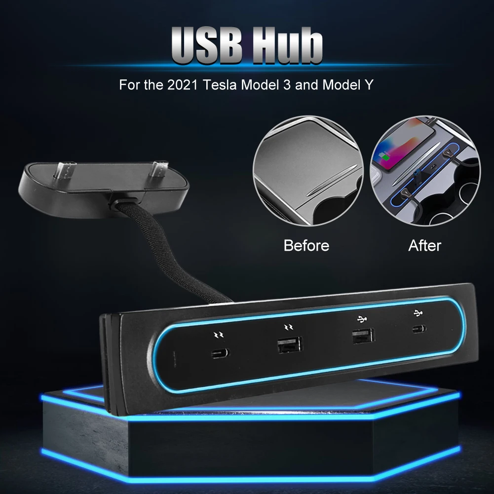 4 In 1 USB Hub Docking Station 27W Fast Charger 4 Ports USB Adapter Charger Powered Splitter Extension For Tesla Model 3 Model Y - Купить с бесплатной доставкой