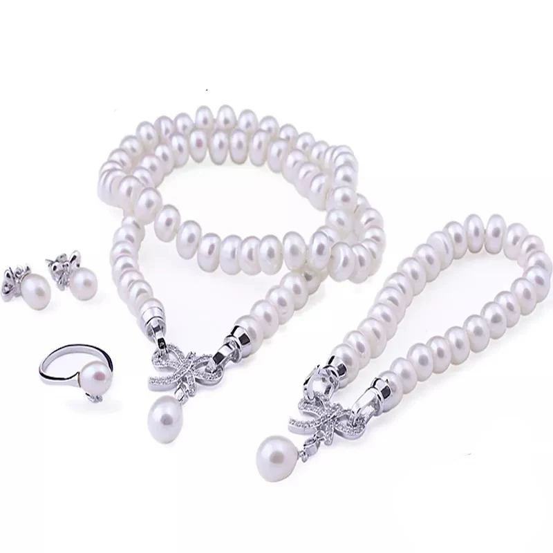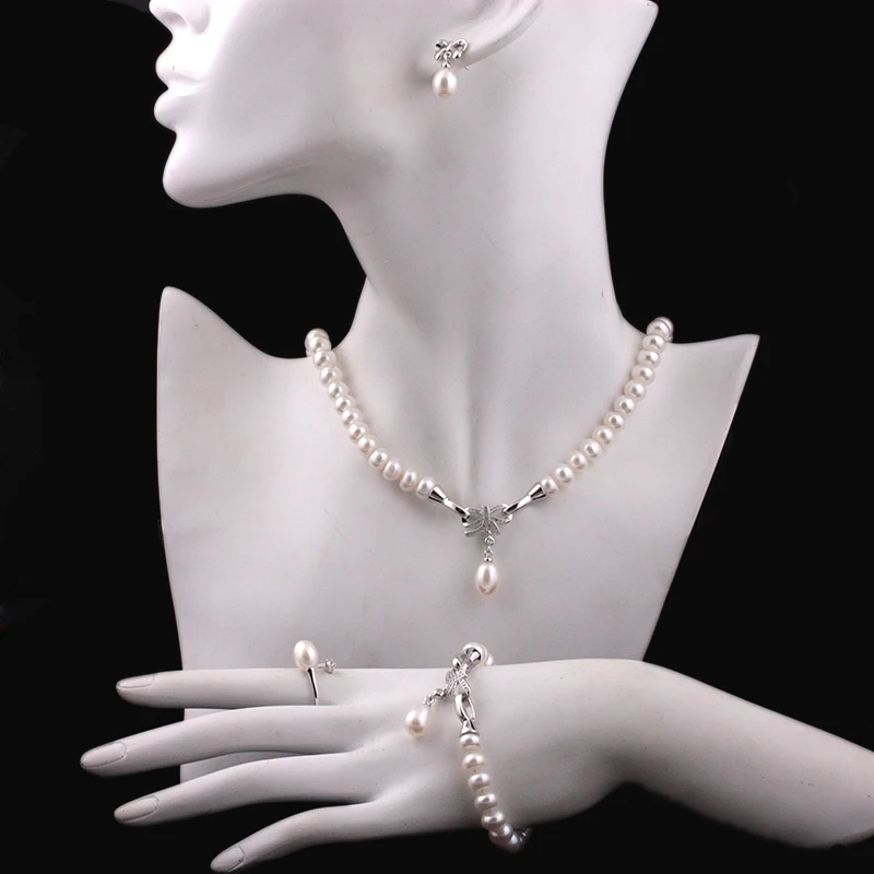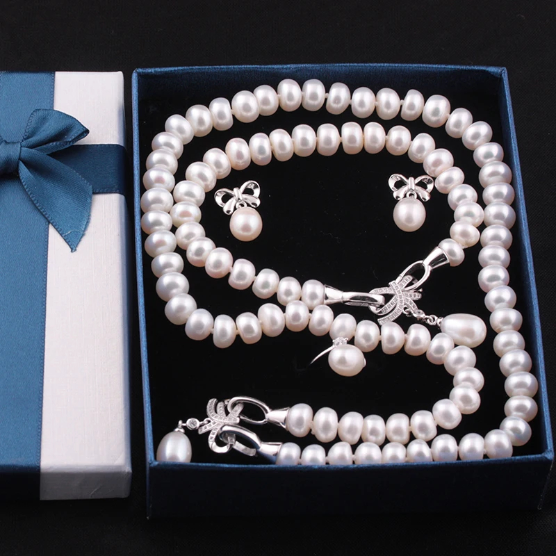 «4 Items natural cultured freshwater pearl jewelry sets s925 silver pendant necklace earrings fine wedding jewelry» по лучшей цене на рынке! Всего за 42$ (3990рублей)