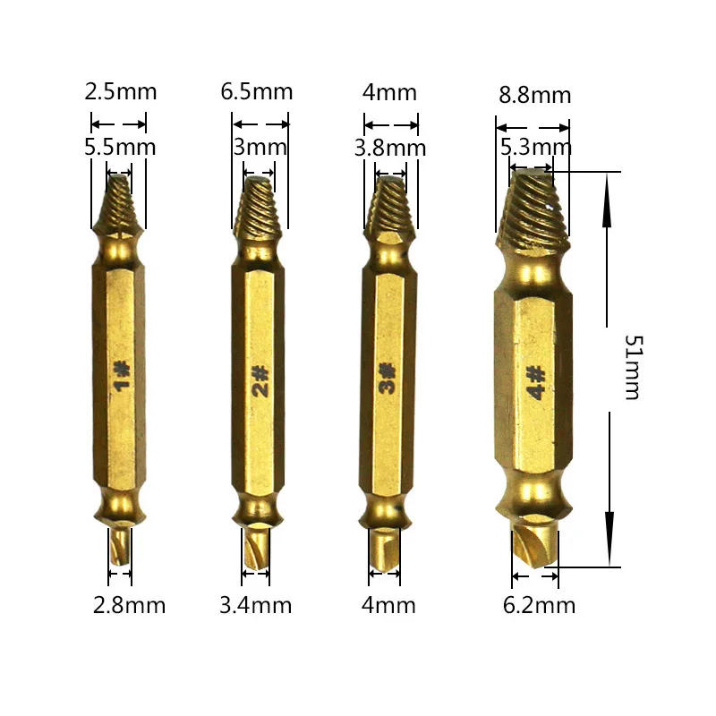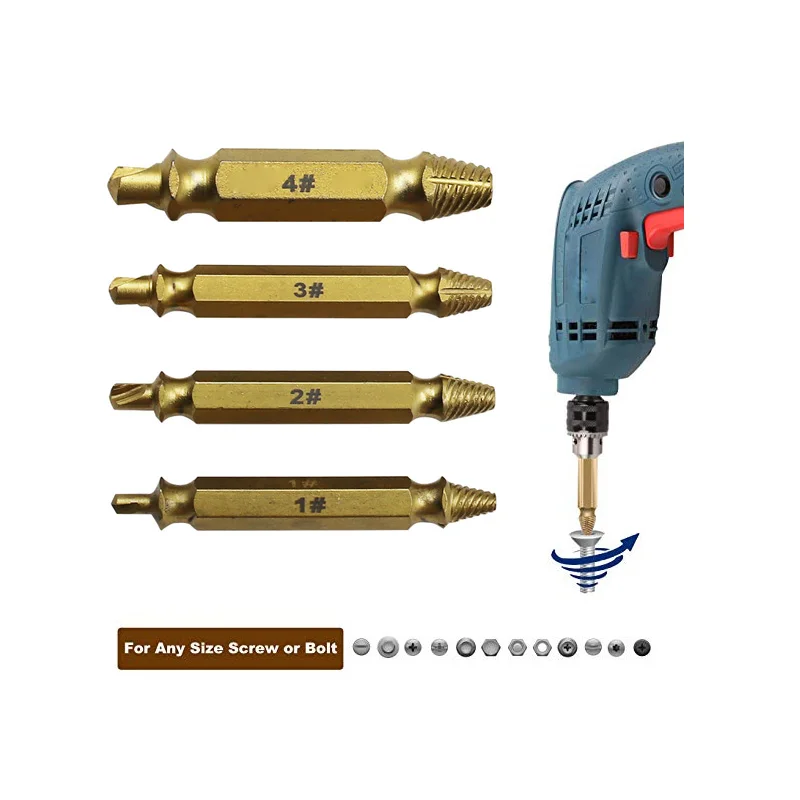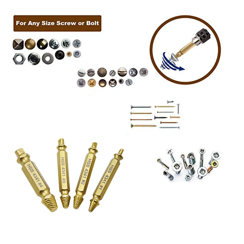 FObCLxVylALooked for 4 PCS Damaged Screw Extractor Set Made TITANIUM COATING Premium High Speed Steel 4341 Broken Screw Nail Extractor Screw Remover for a long time, but could not find it? Bring to your attention 4 PCS Damaged Screw Extractor Set Made TITANIUM COATING Premium High Speed Steel 4341 Broken Screw Nail Extractor Screw Remover with the best price!