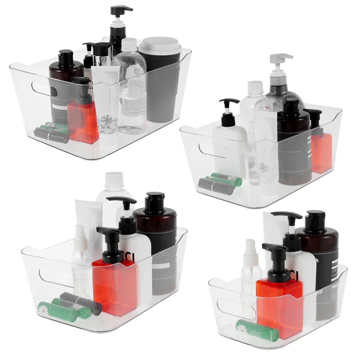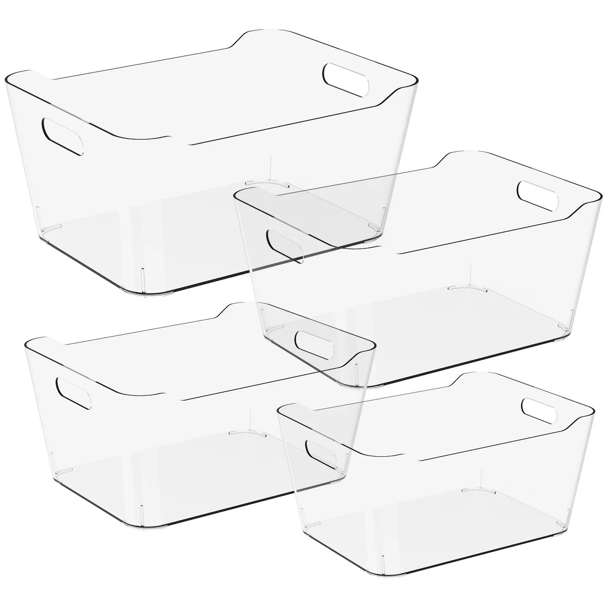 4 Pcs Plastic Storage Bins Transparent Storage Box 4 Sizes Cabinet Organizer Box Set with Handle Fridge Organizer Plastic Bins - Купить с бесплатной доставкой