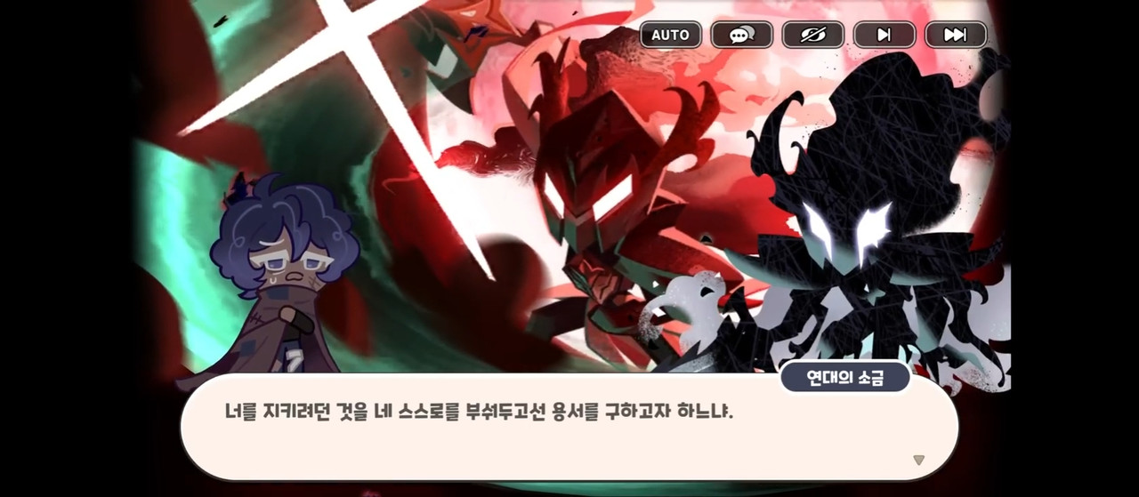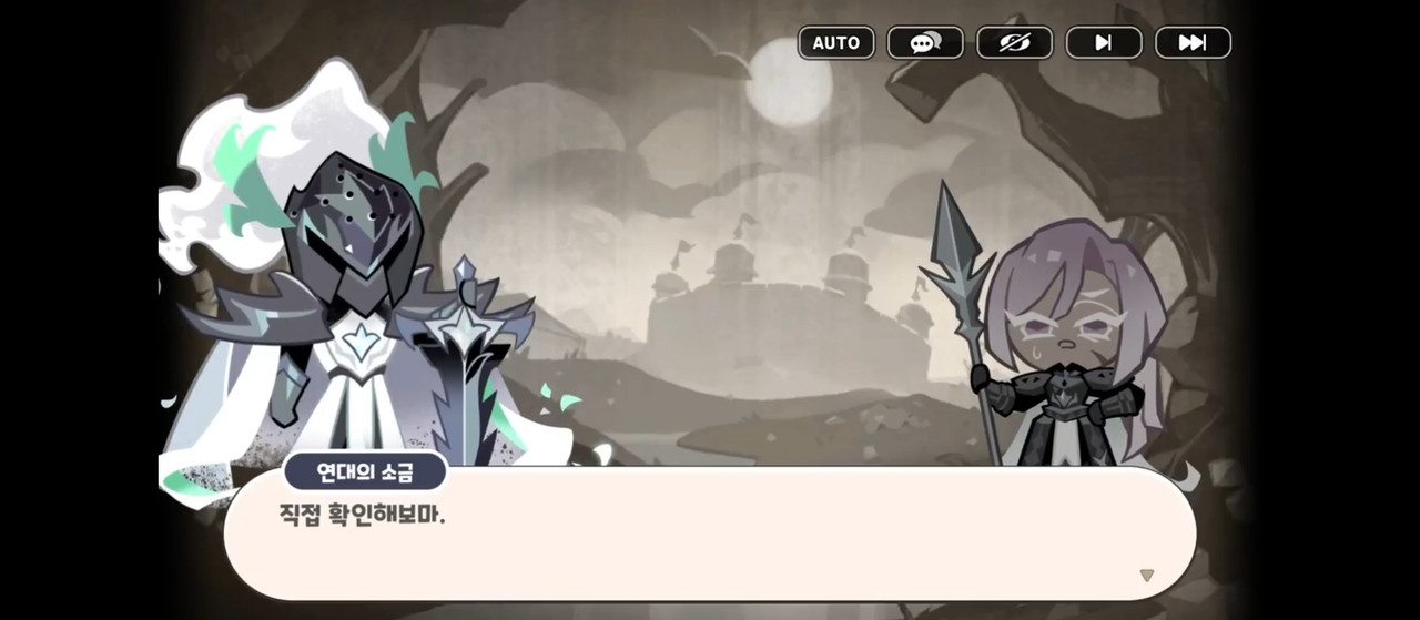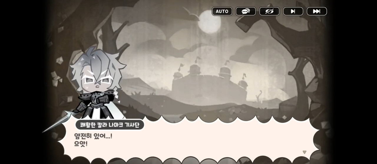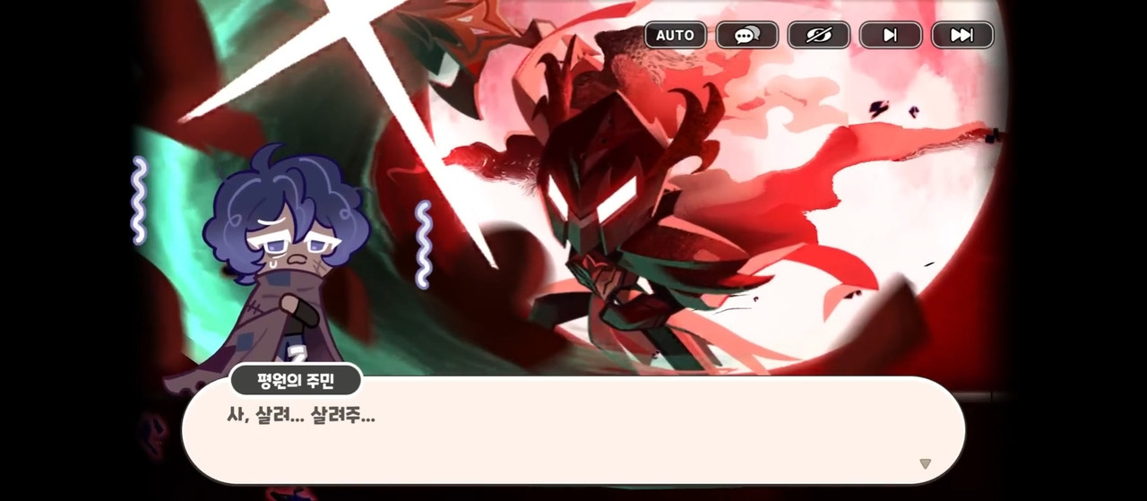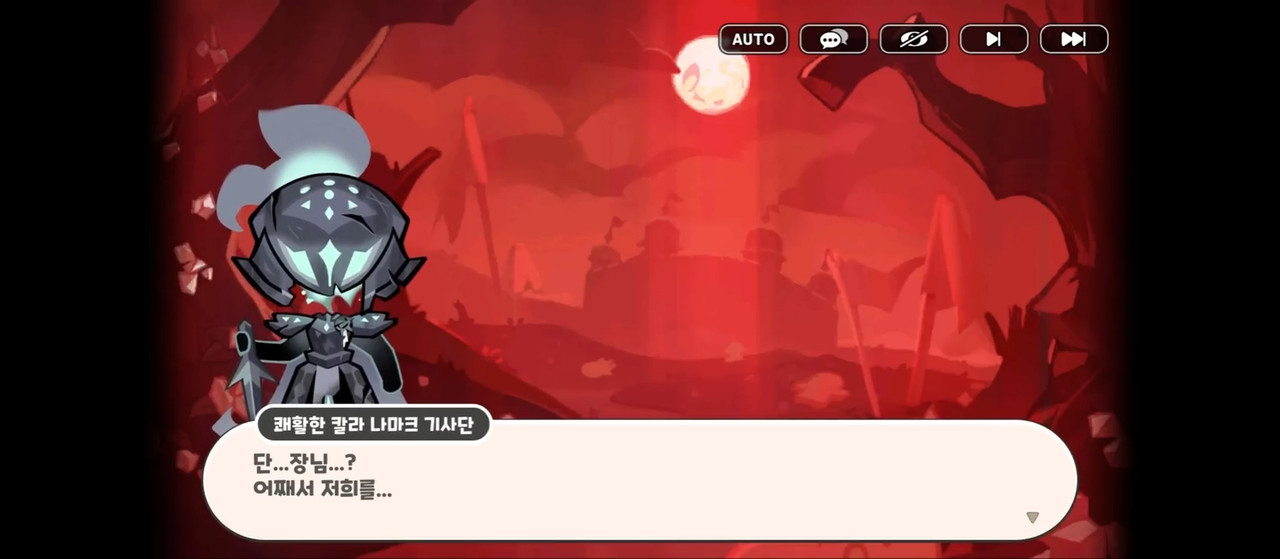 Жизнерадостный рыцарь Каллы Намак: Командир! На равнине появился огромный конь-монстр — он угрожает печеньям! Он очень свиреп и опасен, мы не можем его прогнать…!