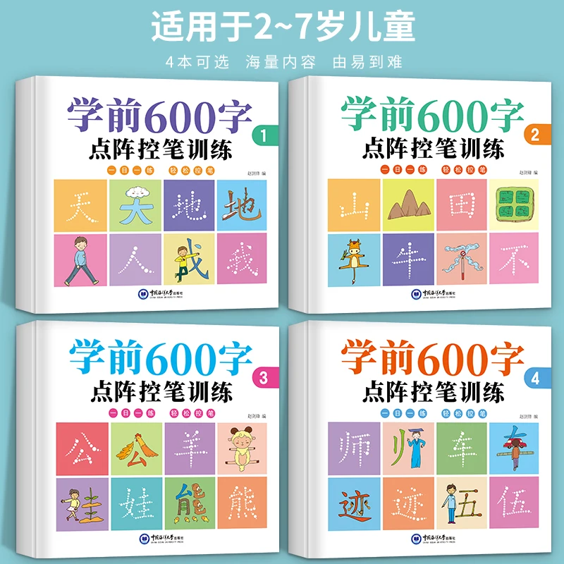 4 Sets Of Pre-School 600-word Calligraphy Practice Stickers Pen Control Training For Students And haracters Beginners - Купить с бесплатной доставкой